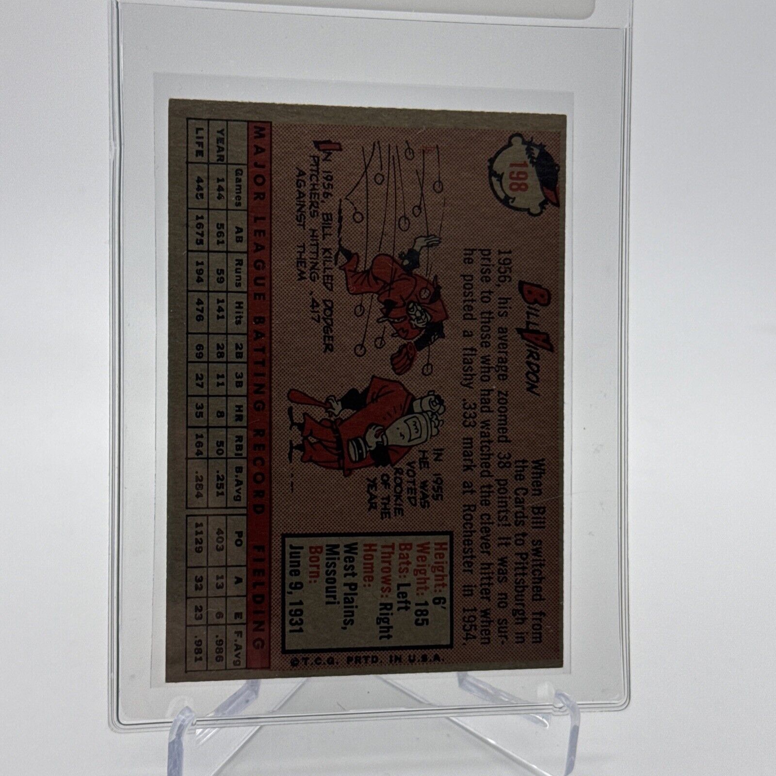 1958 Topps Bill Virdon Baseball Card #198 EX Quality #6 FREE SHIPPING