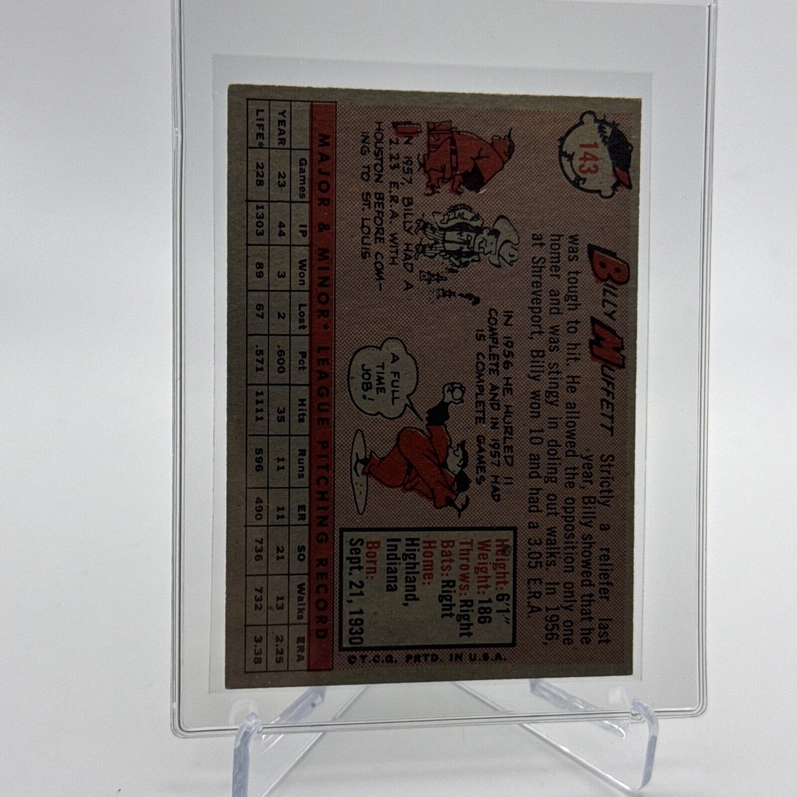 1958 Topps Billy Muffett Baseball Card #143 EX Quality FREE SHIPPING