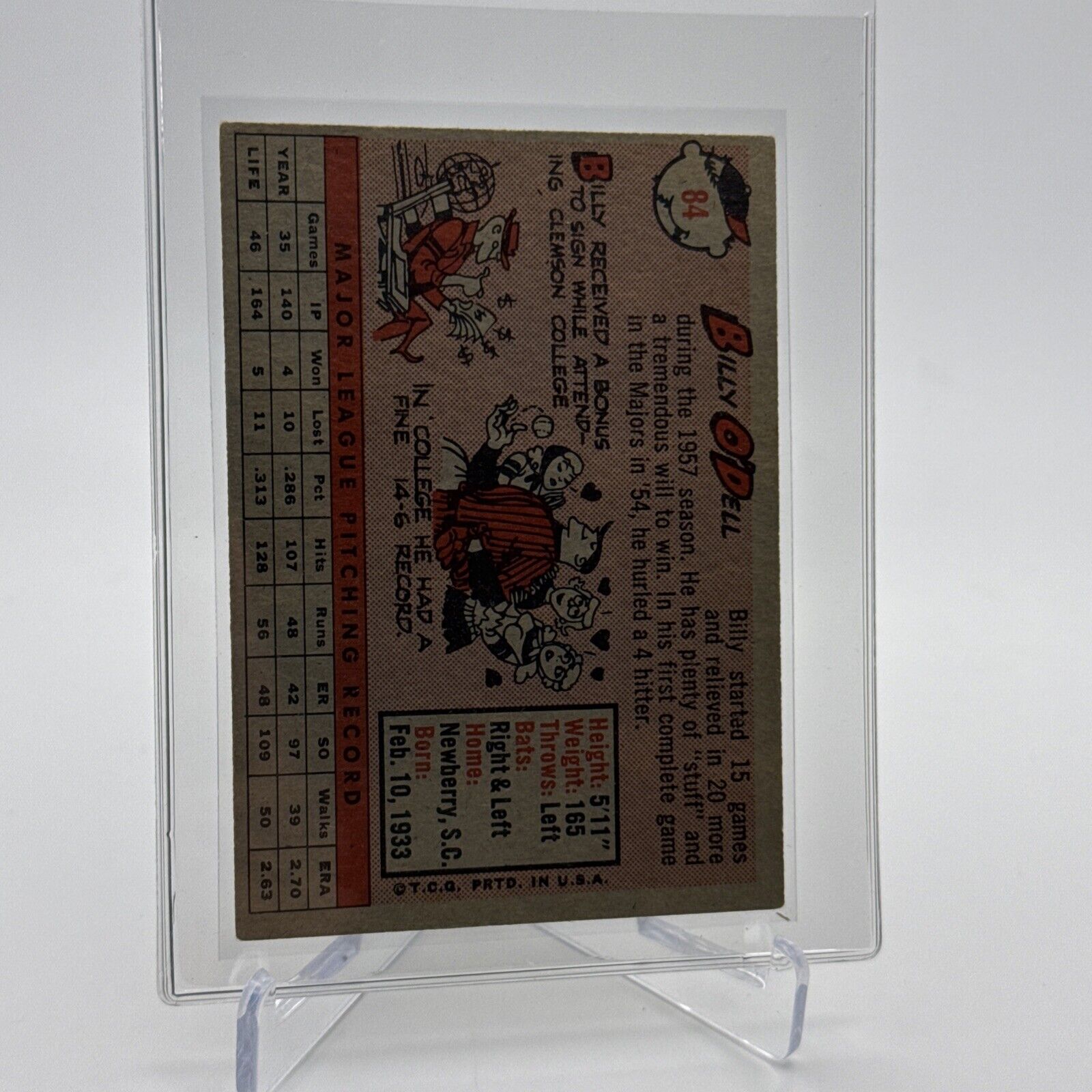 1958 Topps Billy O'Dell Baseball Card #84 EX Quality FREE SHIPPING