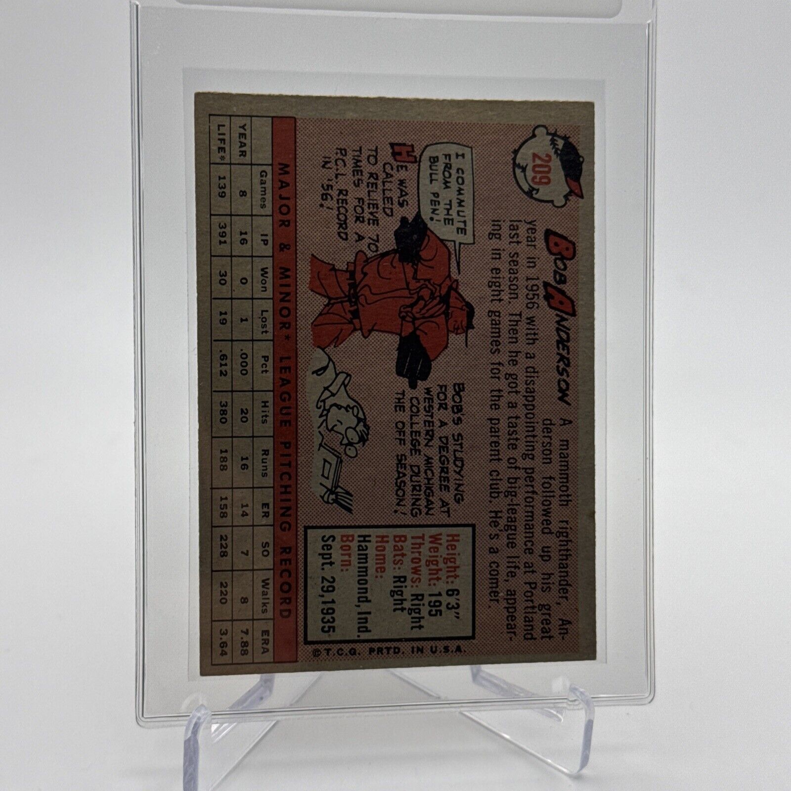1958 Topps Bob Anderson Rookie Baseball Card #209 EX Quality FREE SHIPPING