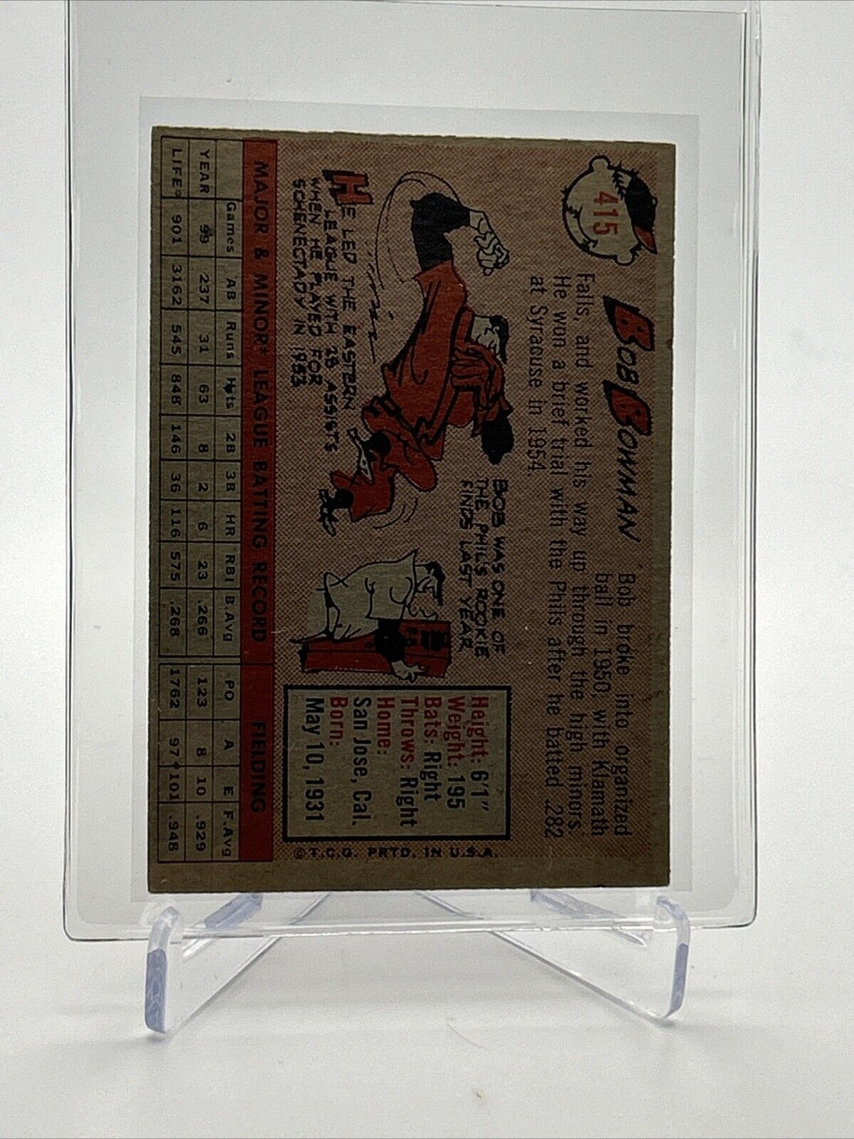 1958 Topps Bob Bowman Baseball Card #415 VG Quality FREE SHIPPING