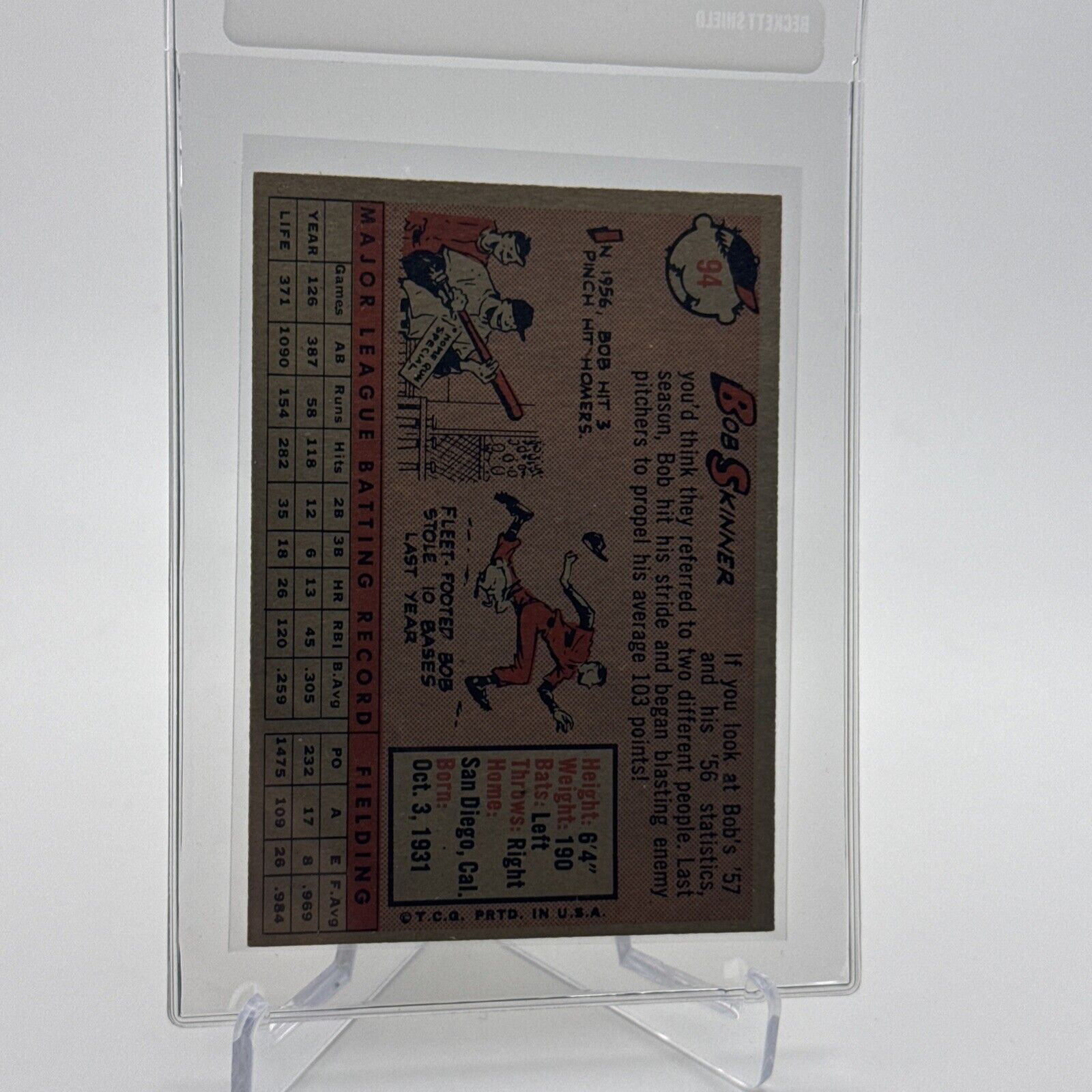 1958 Topps Bob Skinner Baseball Card #94 EX Quality #4 FREE SHIPPING