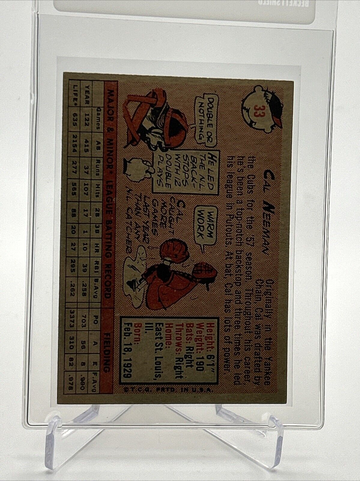 You are purchasing a 1958 Topps Cal Neeman #33. You will receive the exact item in the scans. Free shipping with tracking is provided for this listing. We have over 125,000 positive feedback.We provide free 30 day returns on all purchases. Please reach out with any questions. Thanks for your consideration. Listed With Mascot.