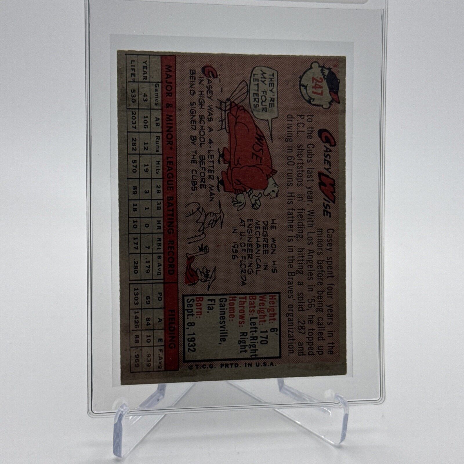 1958 Topps Casey Wise Baseball Card #247 EX Quality #2 FREE SHIPPING