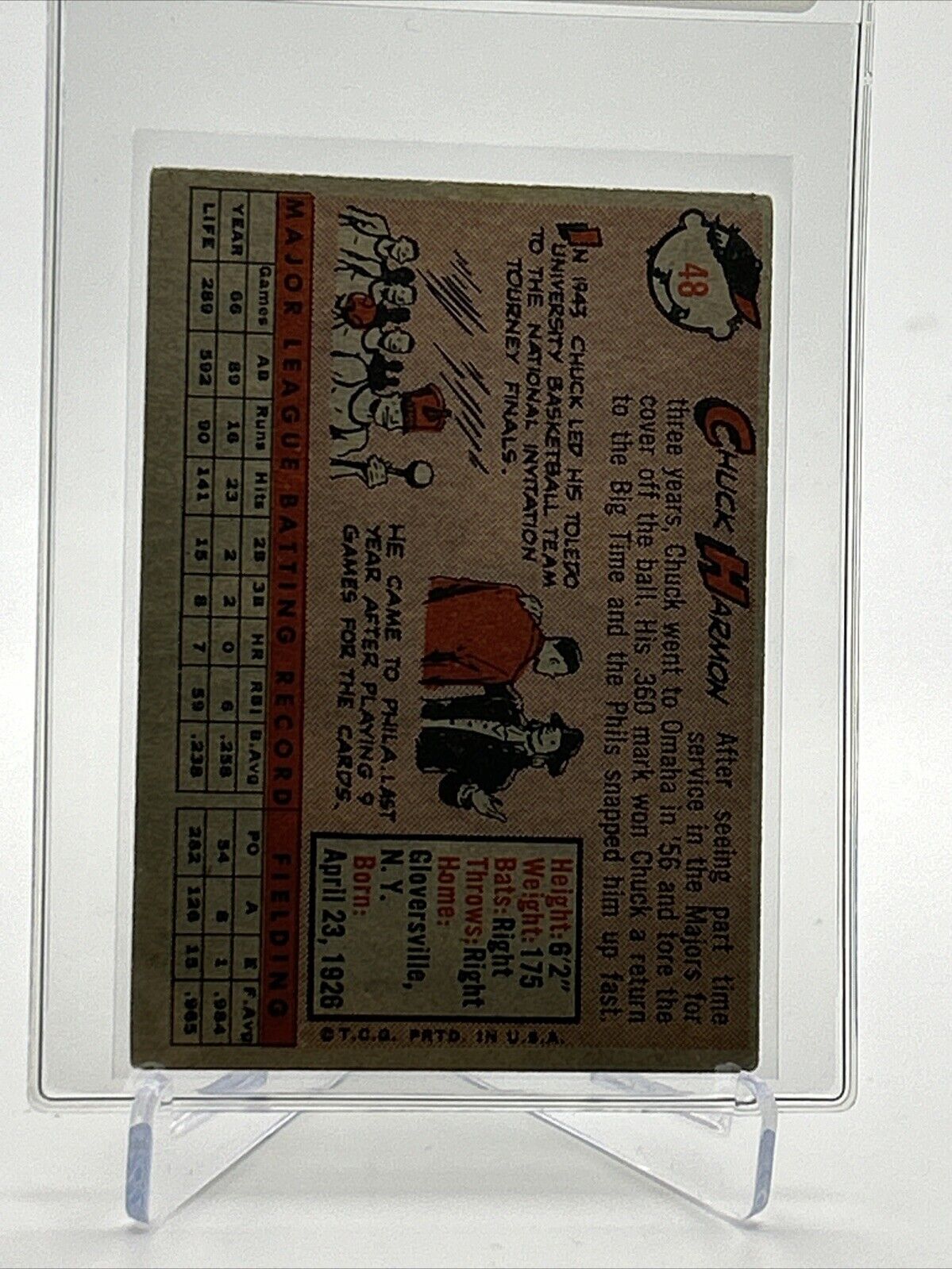 1958 Topps Chuck Harmon Baseball Card #48 VG Quality FREE SHIPPING