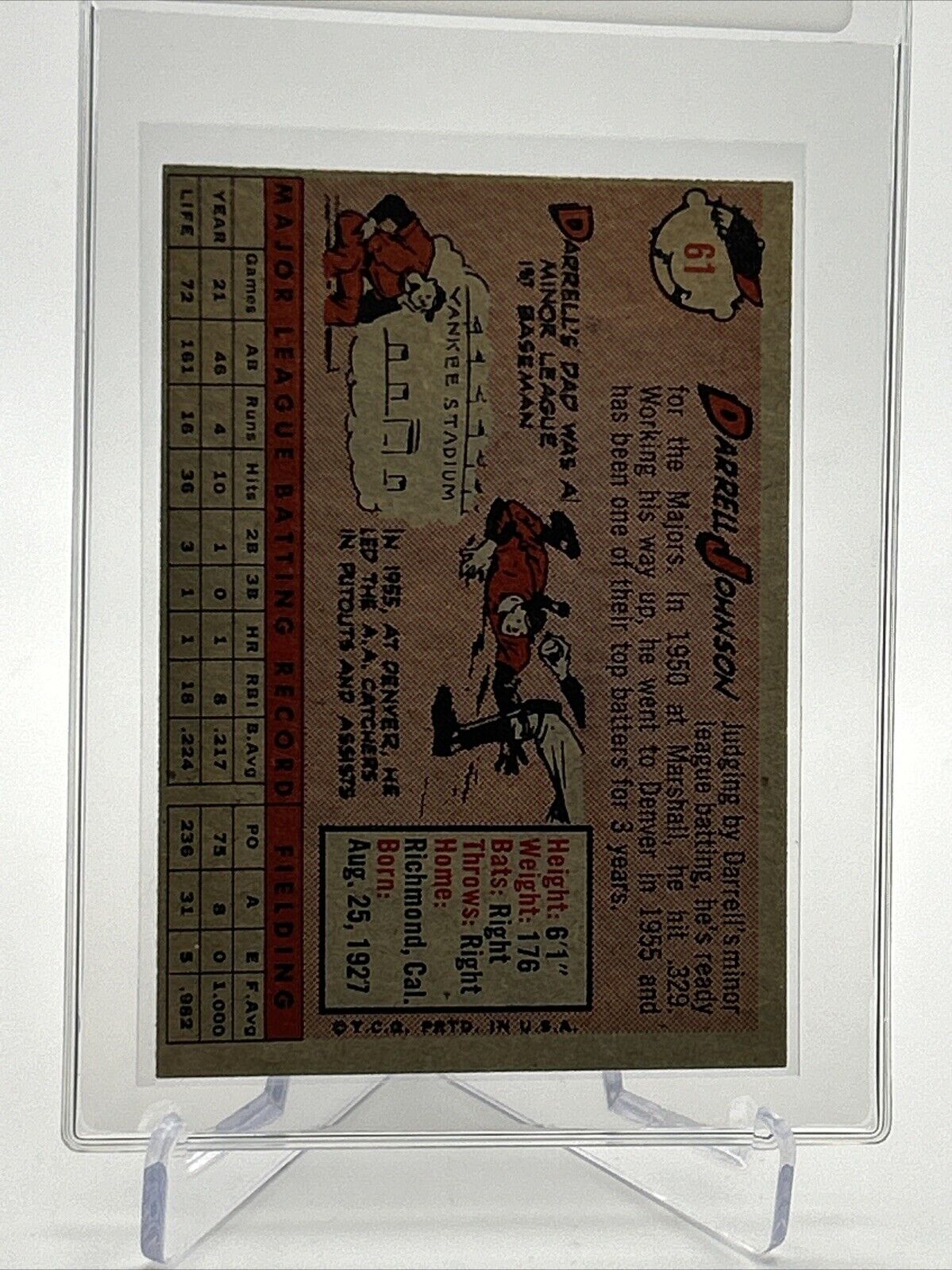 1958 Topps Darrell Johnson Baseball Card #61 EX Quality #4 FREE SHIPPING