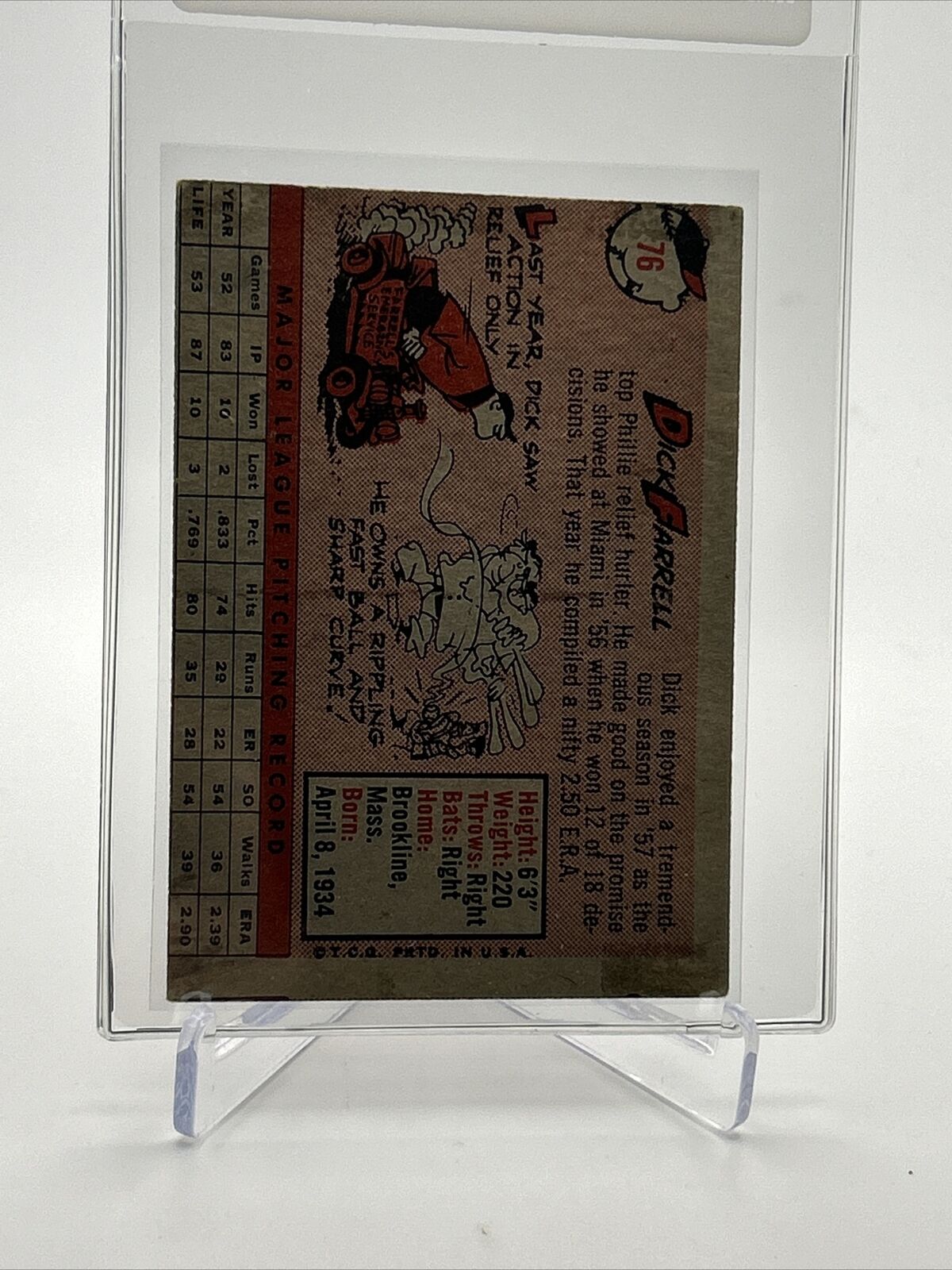 1958 Topps Dick Farrell Rookie Baseball Card #76 EX Quality FREE SHIPPING