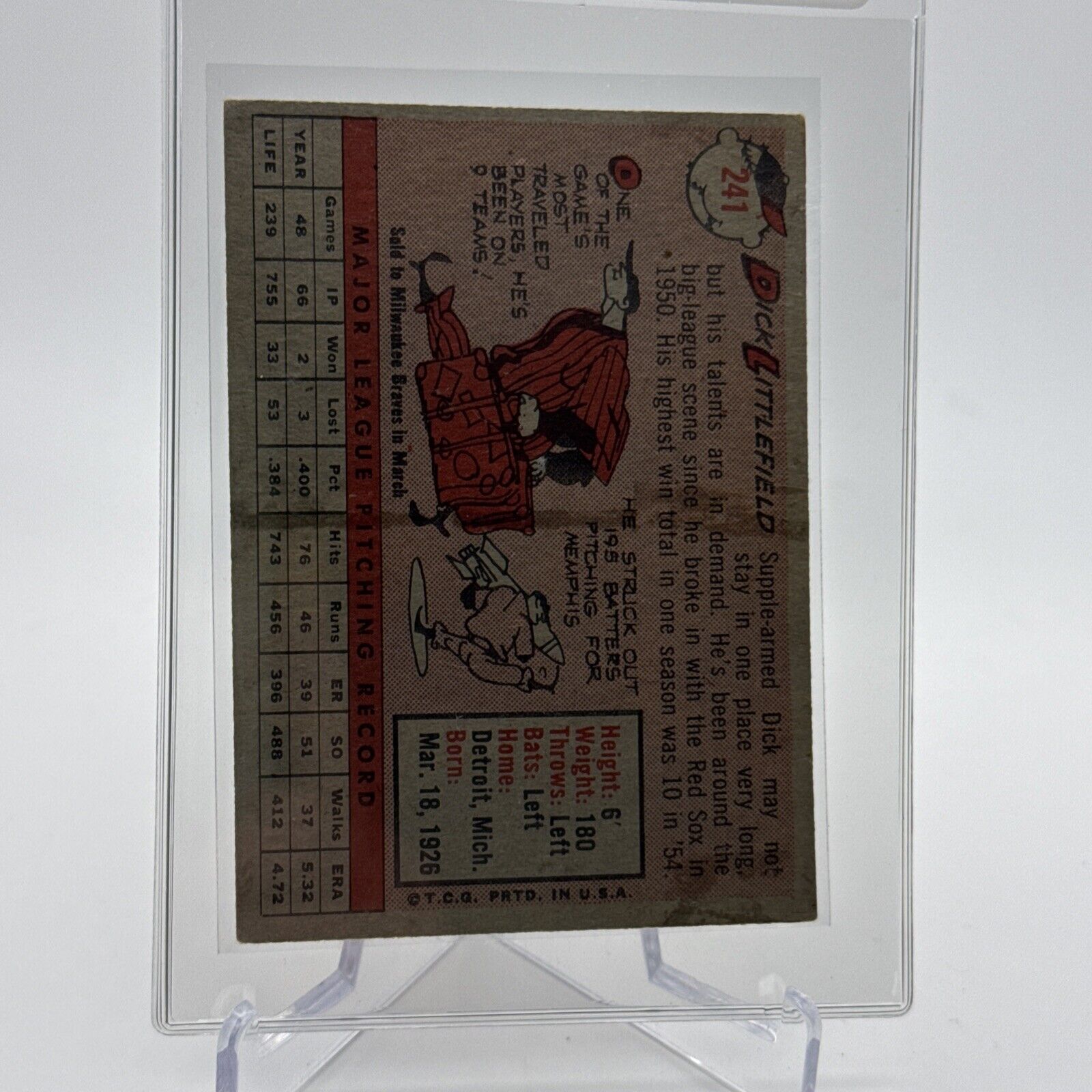 1958 Topps Dick Littlefield Baseball Card #241 EX Quality #3 FREE SHIPPING