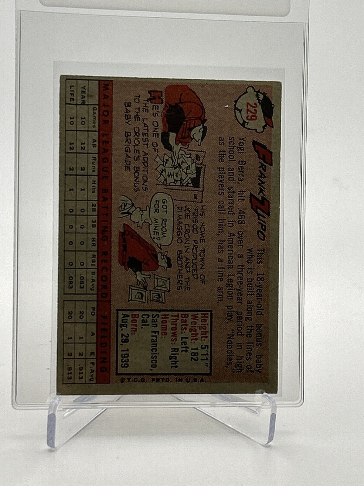 1958 Topps Frank Zupo Rookie Baseball Card #229 EX-MT Quality FREE SHIPPING