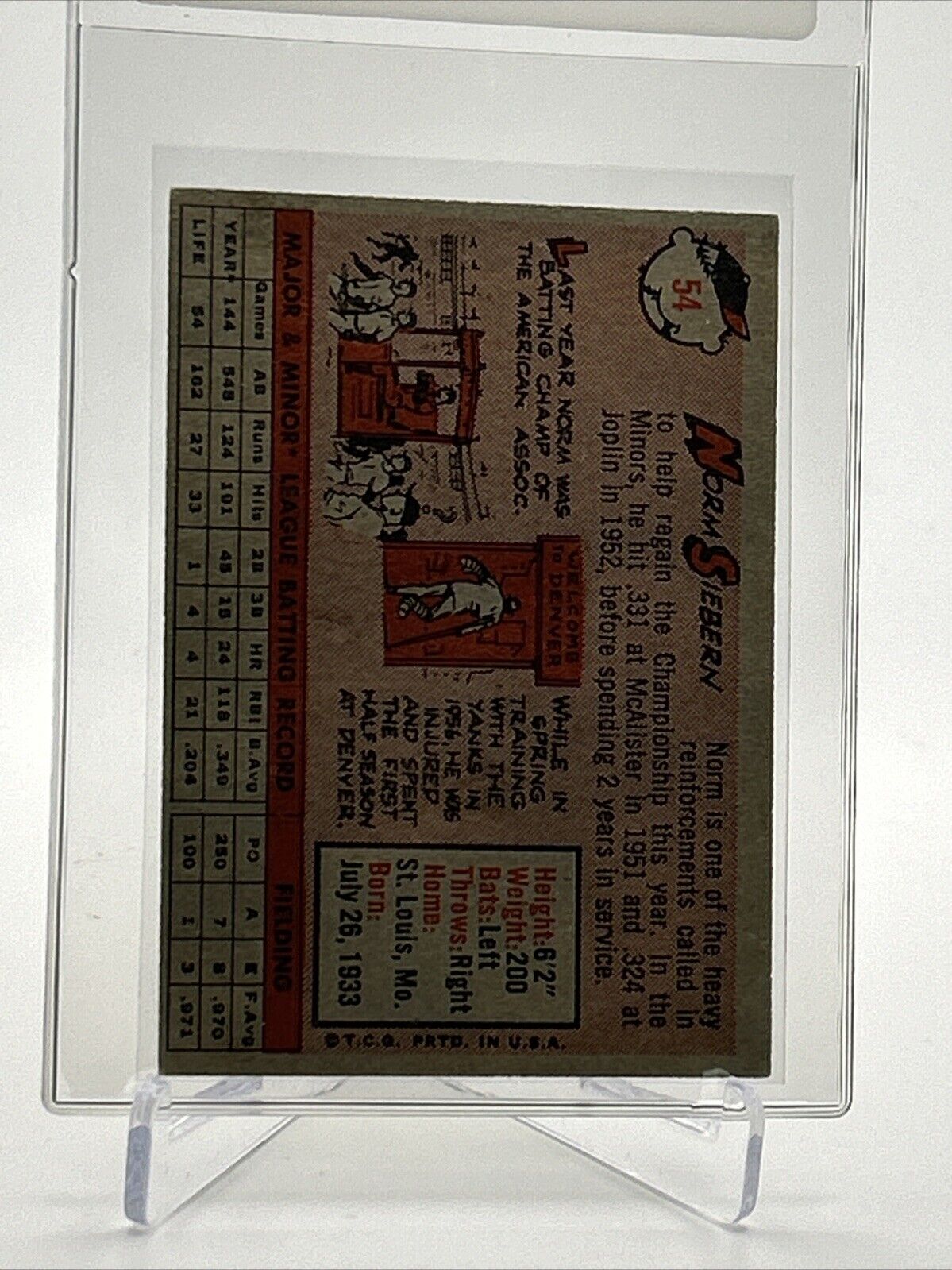 1958 Topps Norm Siebern Rookie Baseball Card #54 EX Quality FREE SHIPPING