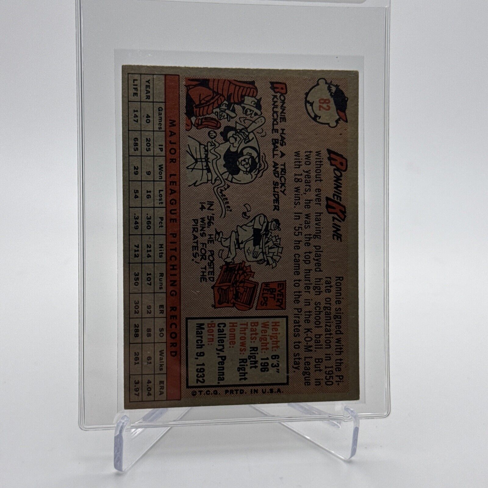 1958 Topps Ronnie Kline Baseball Card #82 EX Quality #3 FREE SHIPPING