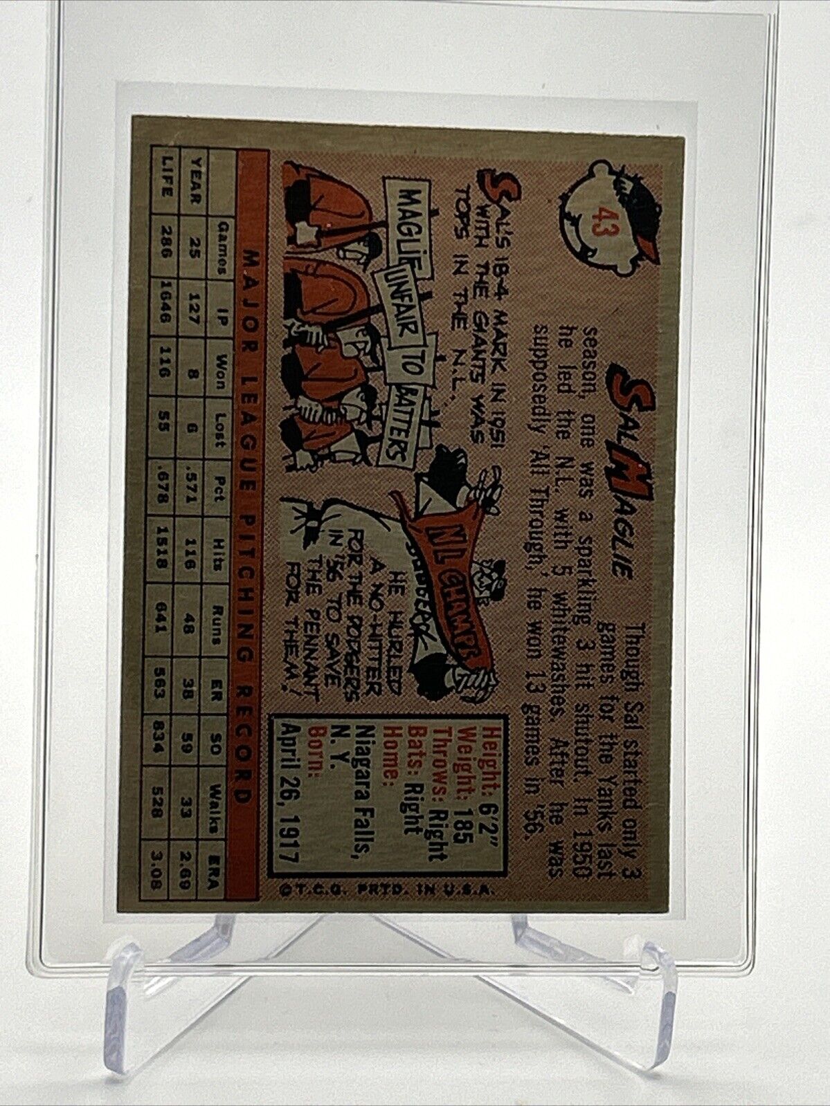 1958 Topps Sal Maglie Baseball Card #43 EX Quality #5 FREE SHIPPING
