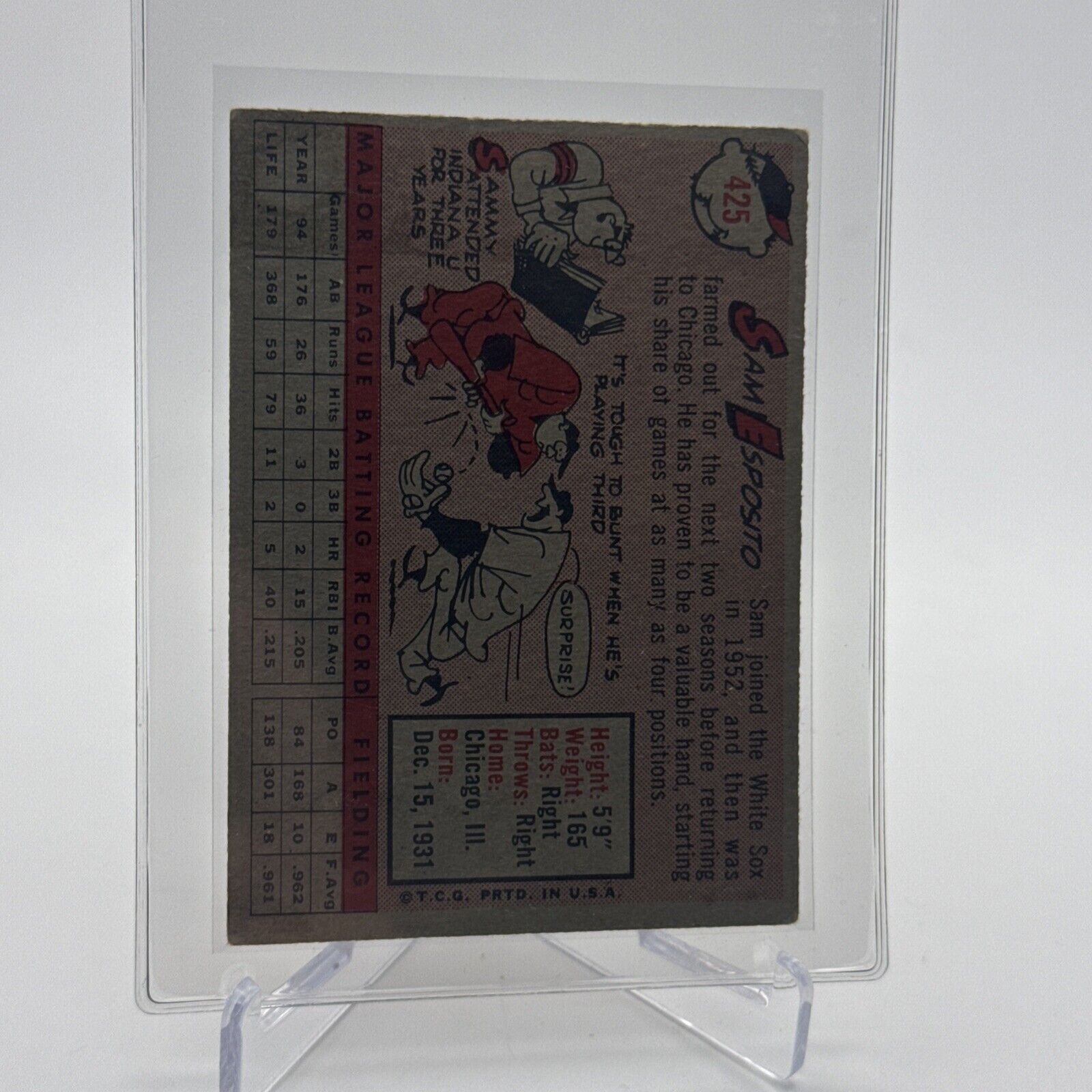 1958 Topps Sam Esposito Baseball Card #425 EX Quality FREE SHIPPING