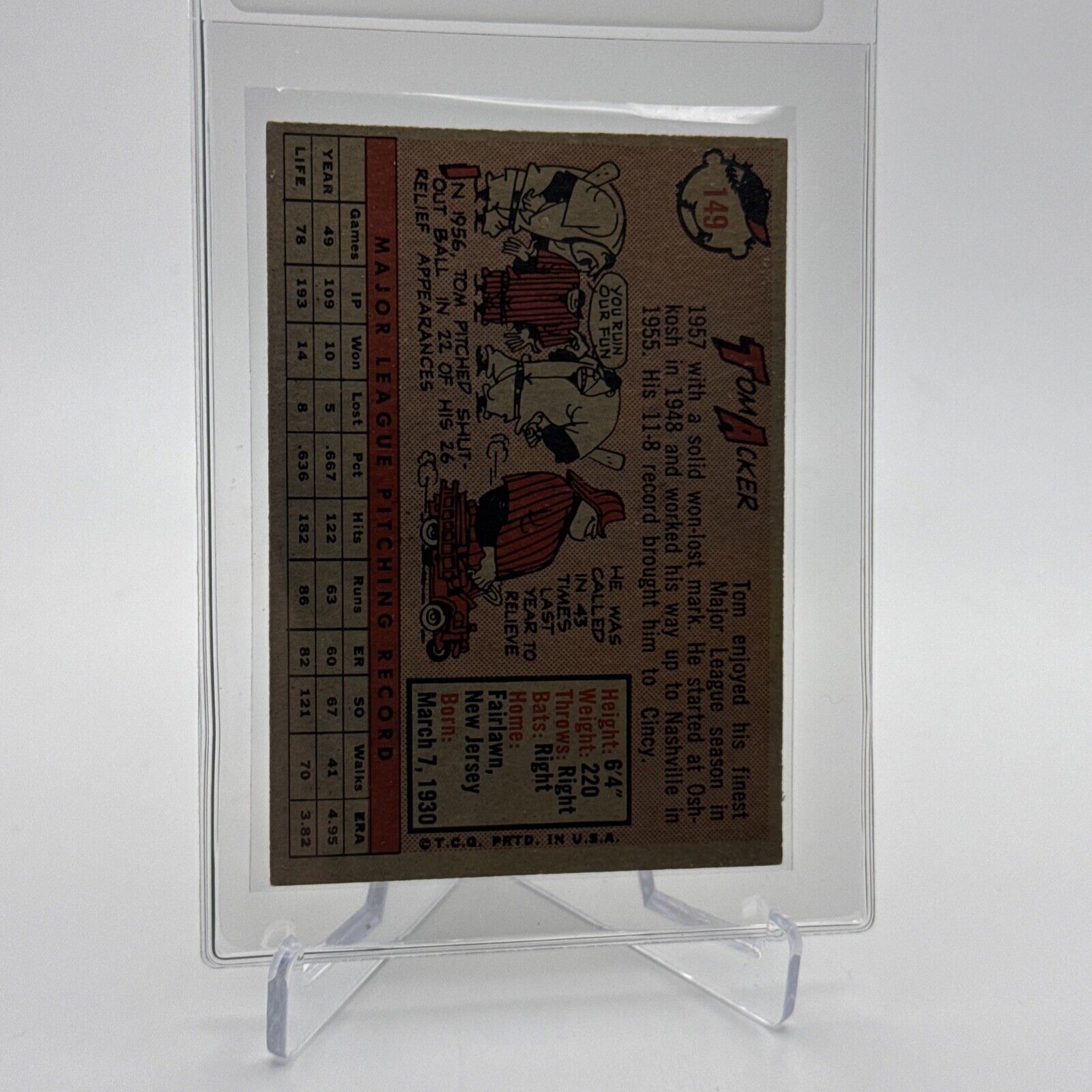 1958 Topps Tom Acker Baseball Card #149 EX Quality FREE SHIPPING