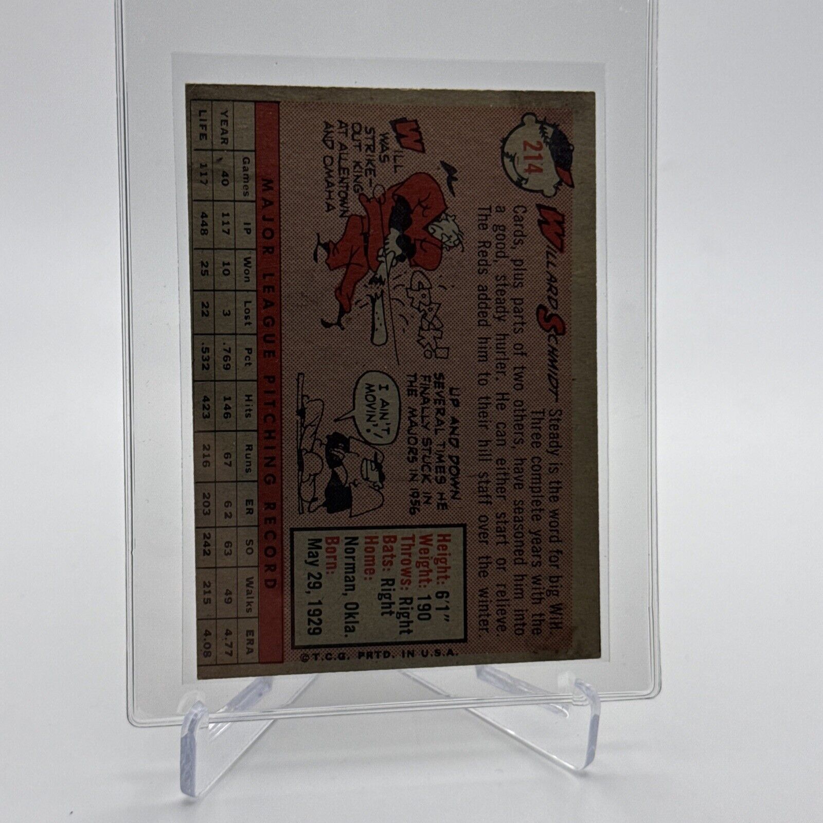1958 Topps Willard Schmidt Baseball Card #214 EX Quality #2 FREE SHIPPING