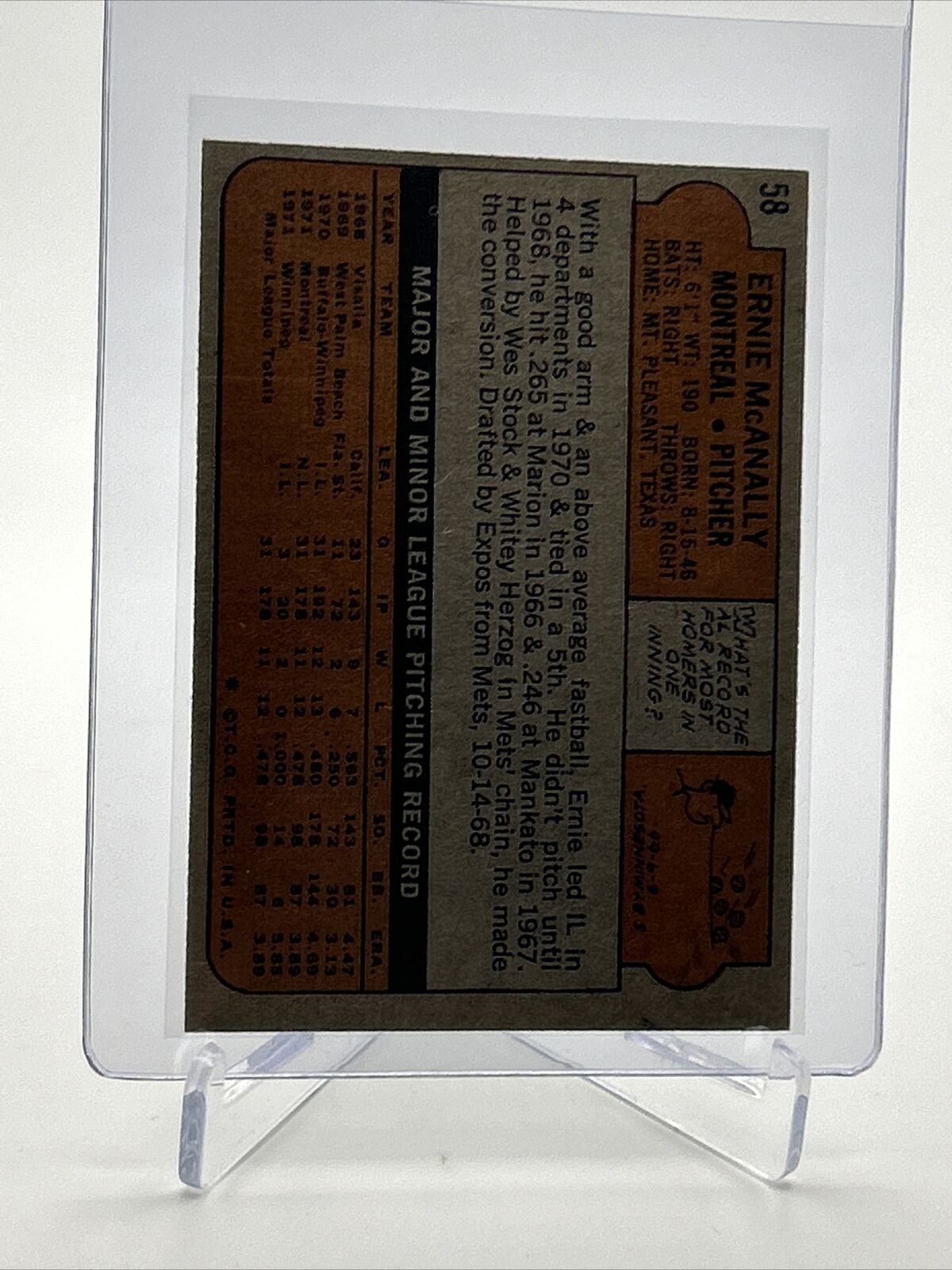 1972 Topps Ernie McAnally Baseball Card #58 EX Quality FREE SHIPPING