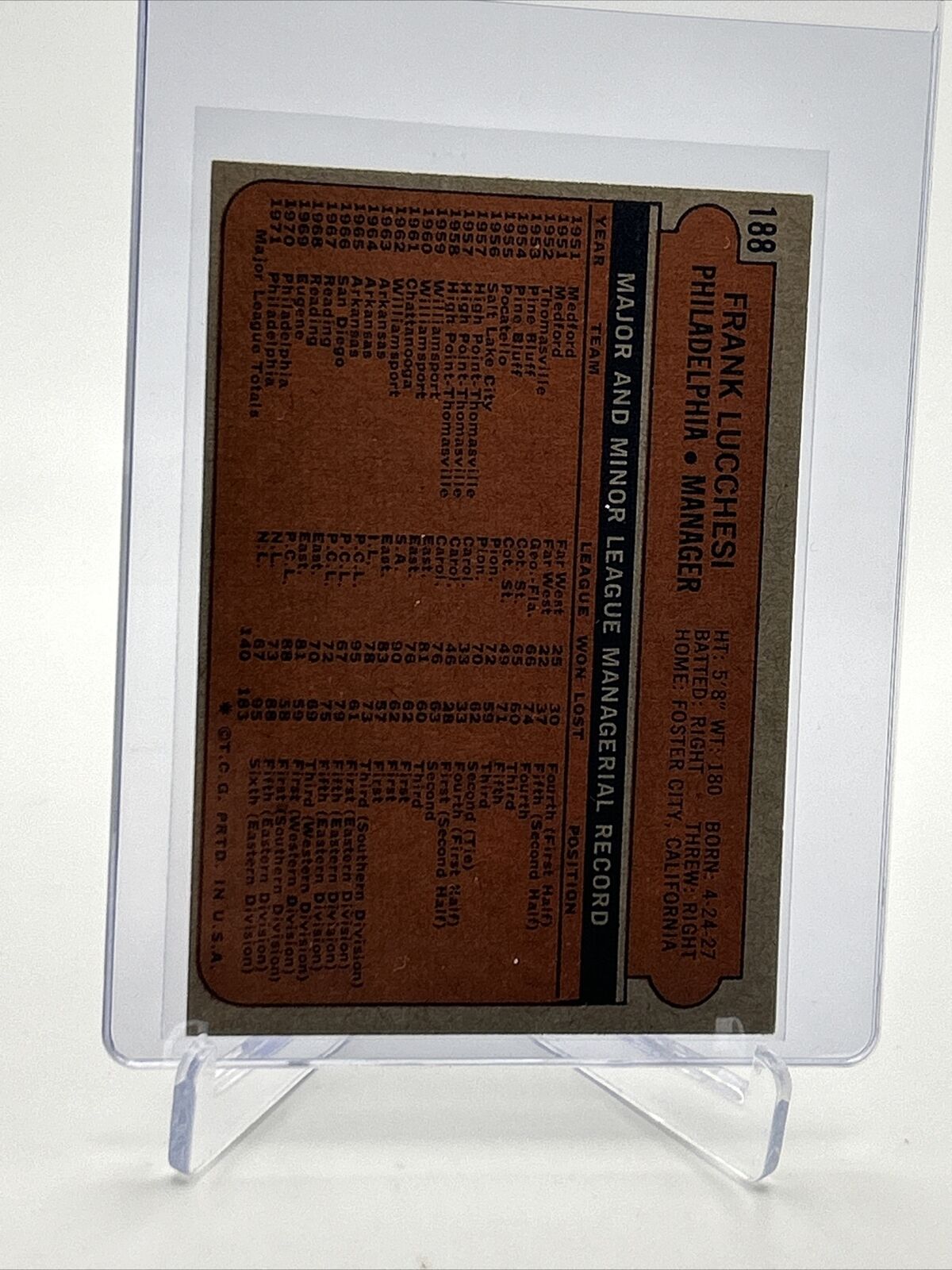 1972 Topps Frank Lucchesi Baseball Card #188 VG-EX Quality FREE SHIPPING