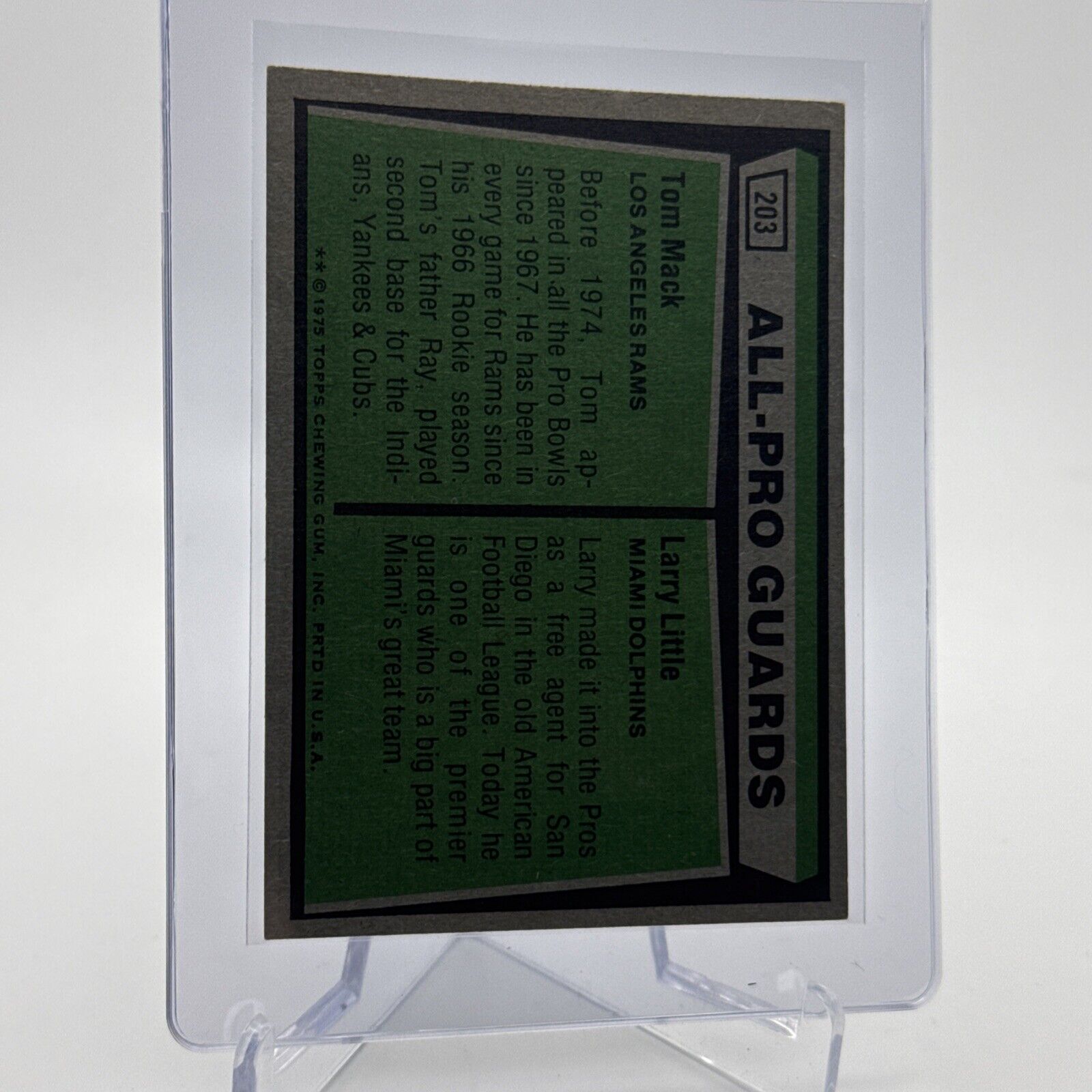 You are purchasing a 1975 Topps Tom Mack Larry Little #203. You will receive the exact item in the scans. Free shipping with tracking is provided for this listing. We have over 125,000 positive feedback.We provide free 30 day returns on all purchases. Please reach out with any questions. Thanks for your consideration. Listed With Mascot.