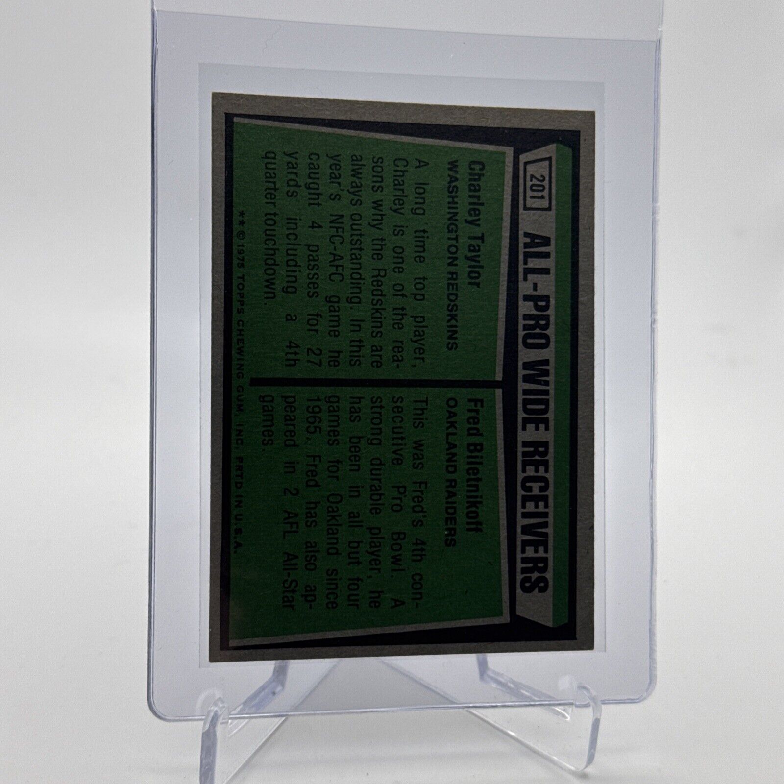 You are purchasing a 1975 Topps Fred Biletnikoff Charley Taylor #201. You will receive the exact item in the scans. Free shipping with tracking is provided for this listing. We have over 125,000 positive feedback.We provide free 30 day returns on all purchases. Please reach out with any questions. Thanks for your consideration. Listed With Mascot.