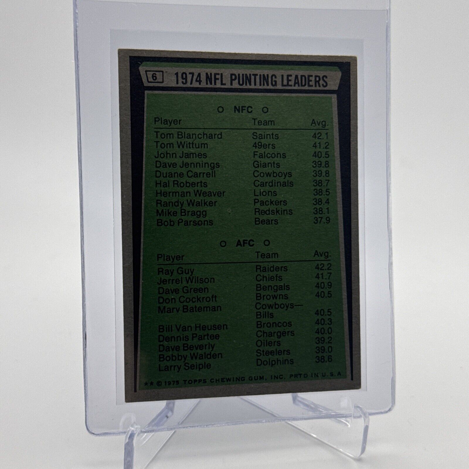 1975 Topps 1974 NFL Punting Leaders Football Card #6 NM Quality #3 FREE SHIPPING