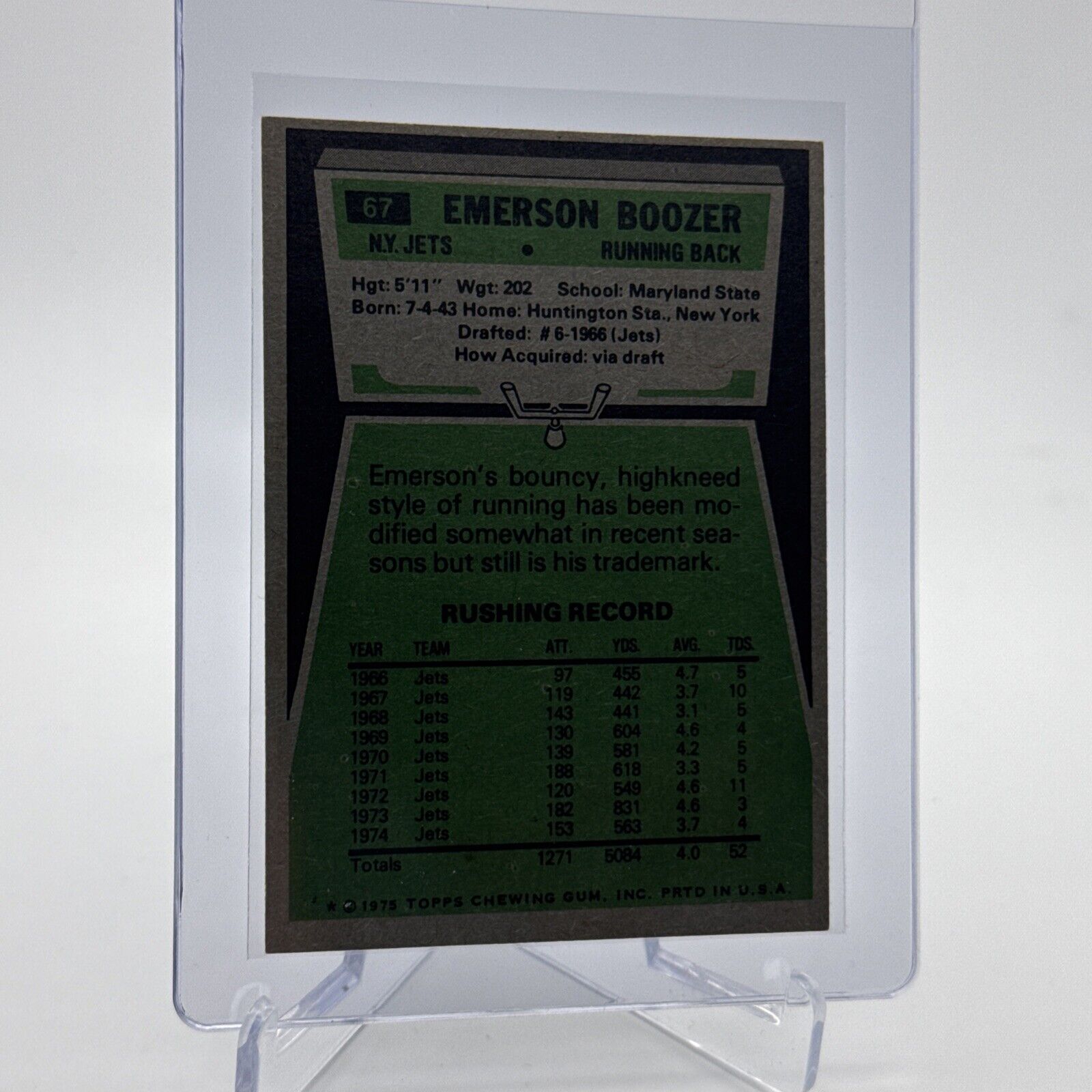 1975 Topps Emerson Boozer Football Card #67 NM Quality #3 FREE SHIPPING
