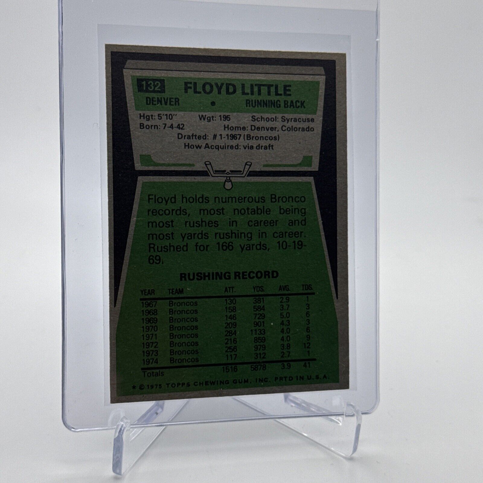 1975 Topps Floyd Little Football Card #132 NM Quality FREE SHIPPING