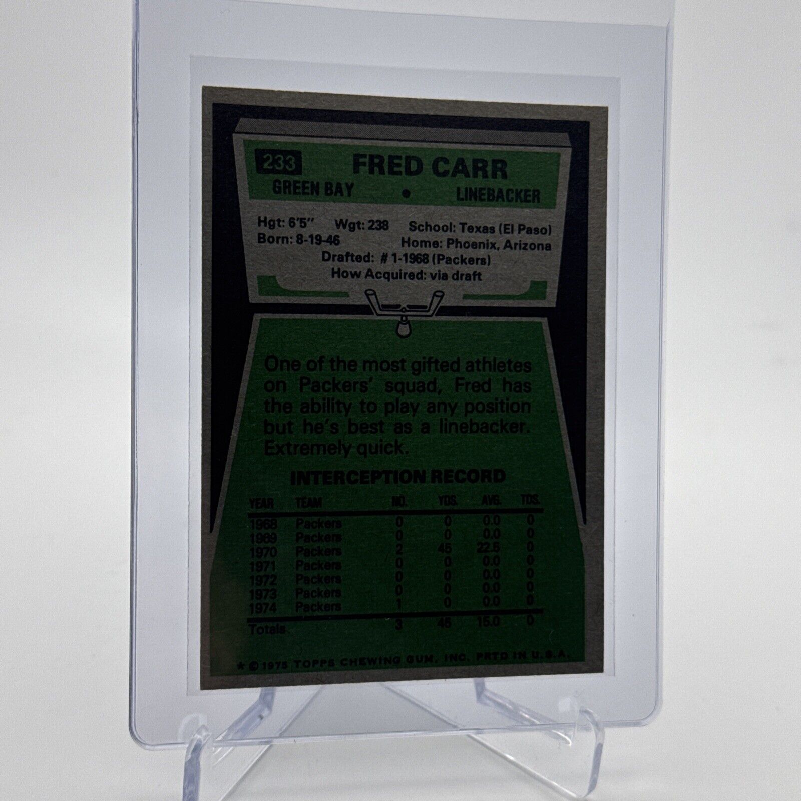 1975 Topps Fred Carr Football Card #233 NM Quality #3 FREE SHIPPING