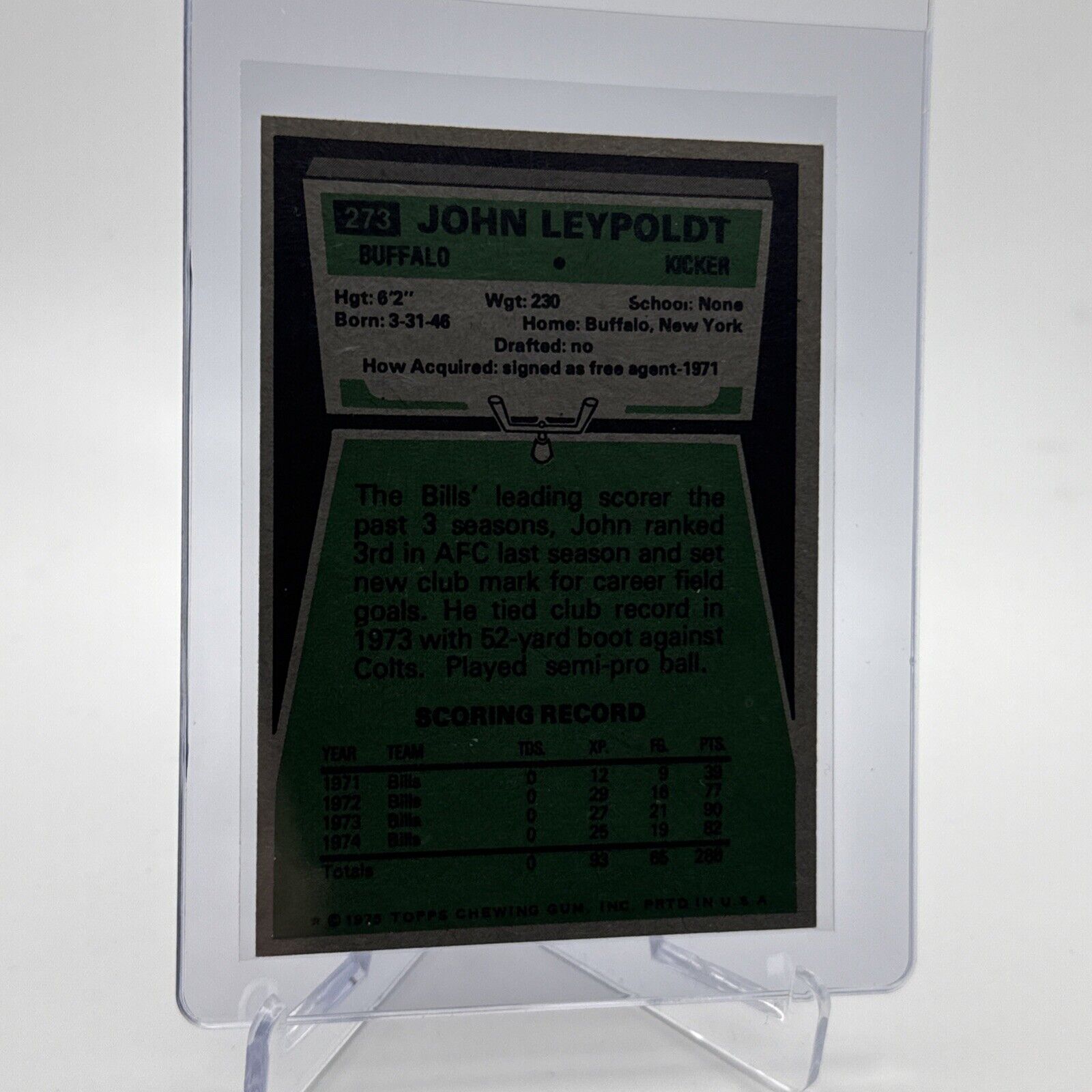 1975 Topps John Leypoldt Football Card #273 NM Quality #6 FREE SHIPPING