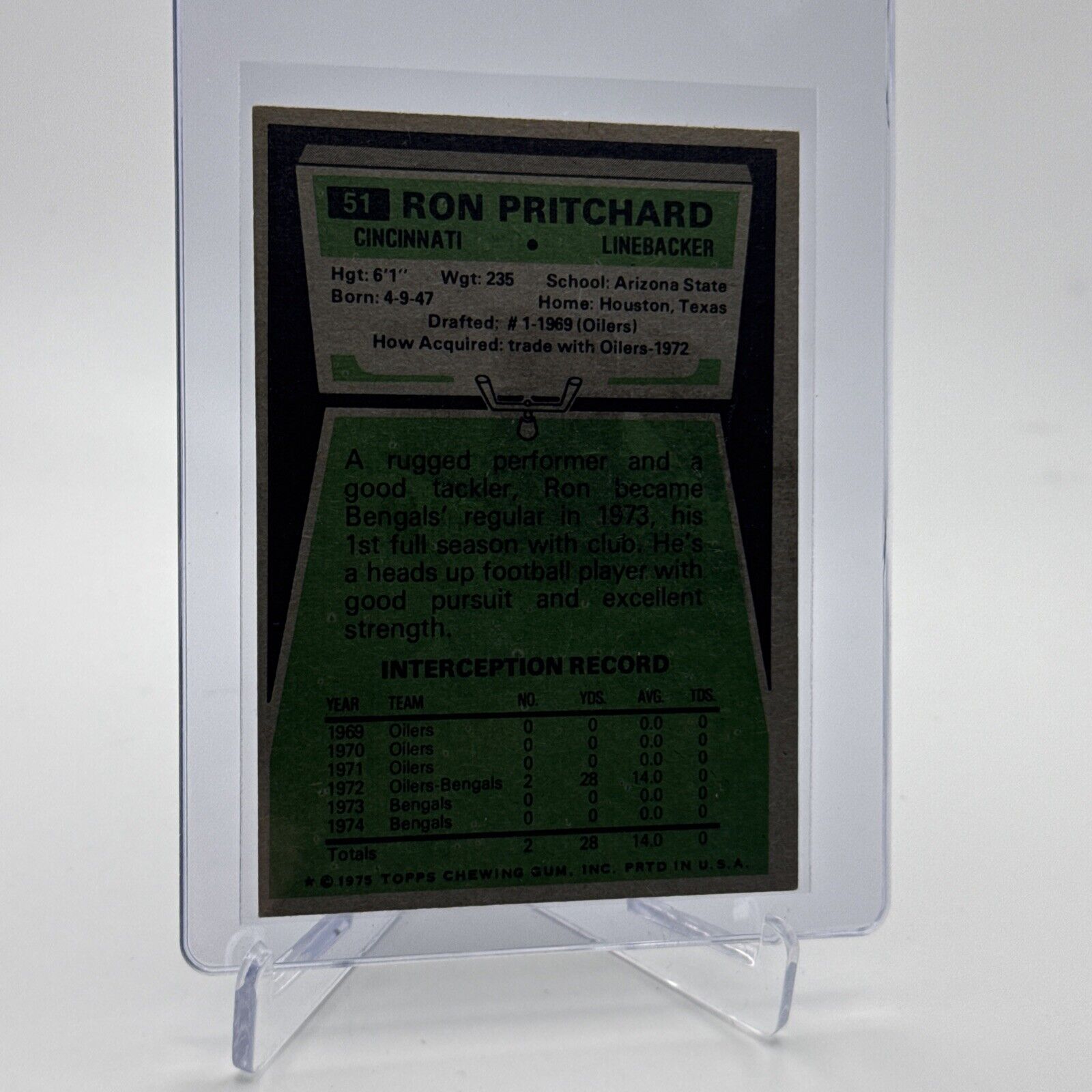 1975 Topps Ron Pritchard Rookie Football Card #51 NM Quality #2 FREE SHIPPING