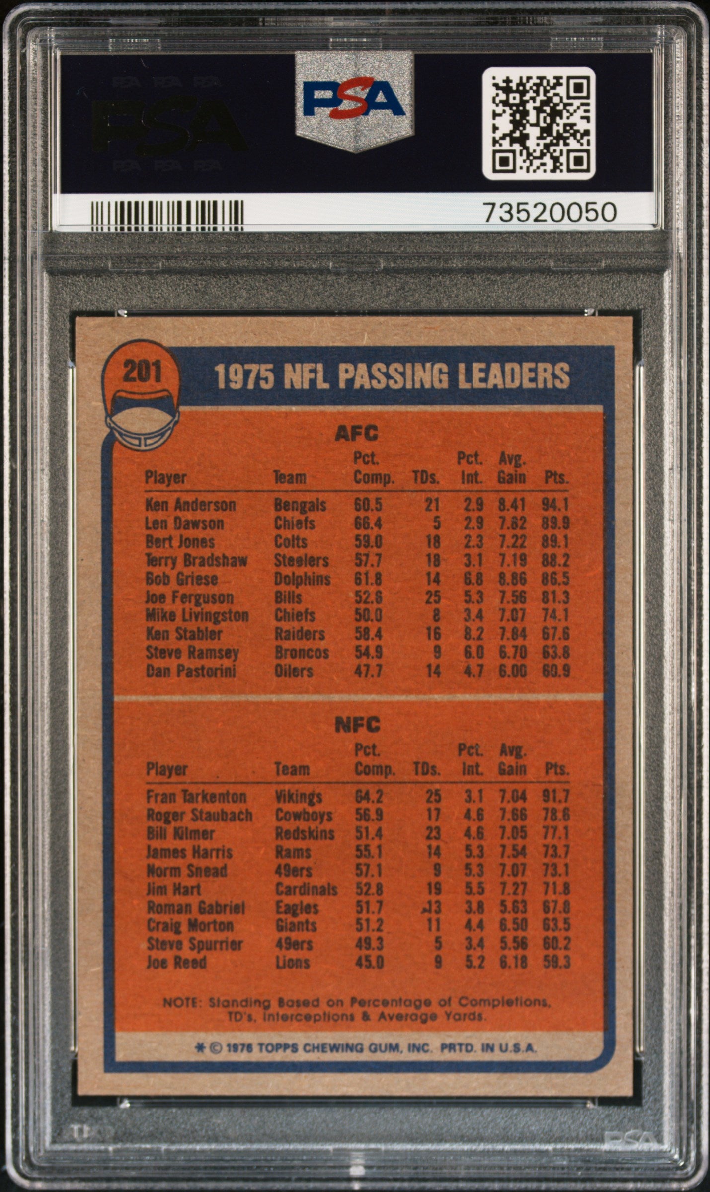 1976 Topps Football Passing Leaders #201 Psa 8 73520050