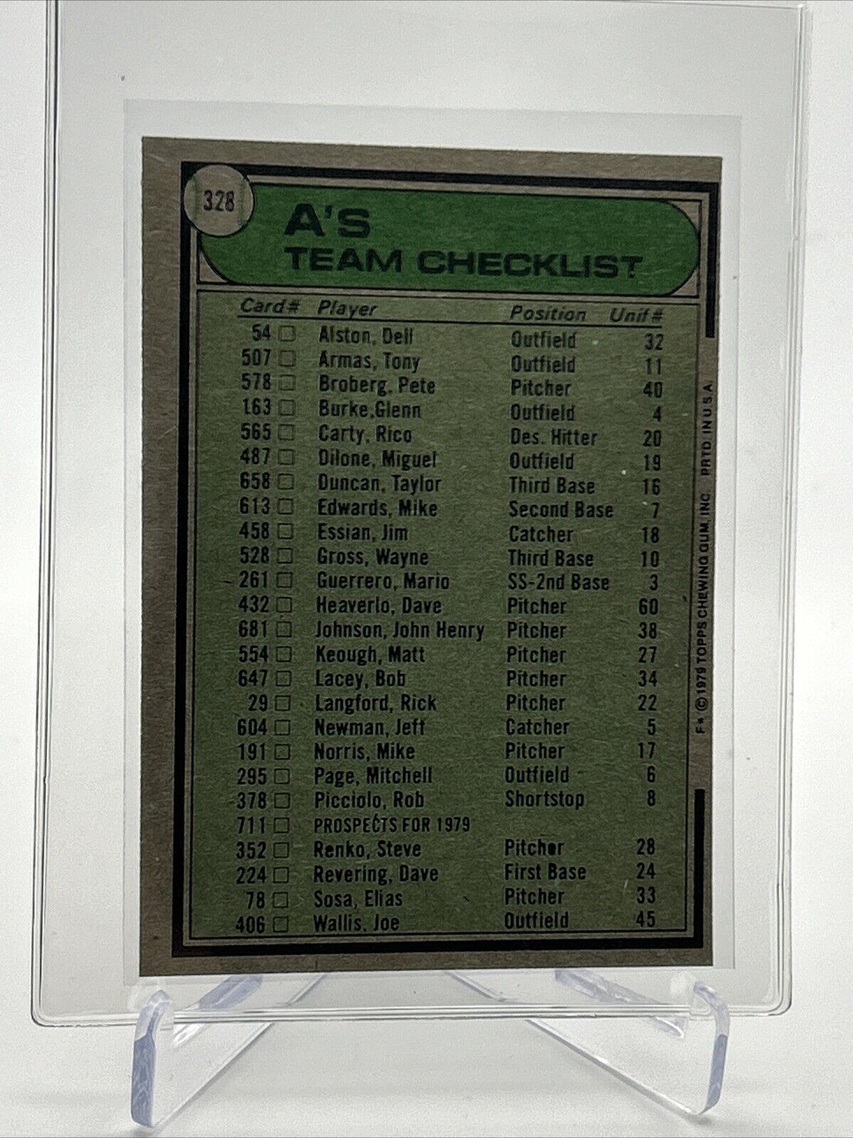 1979 Topps Oakland A's/Jack McKeon Baseball Card #328 NM #4 FREE SHIPPING