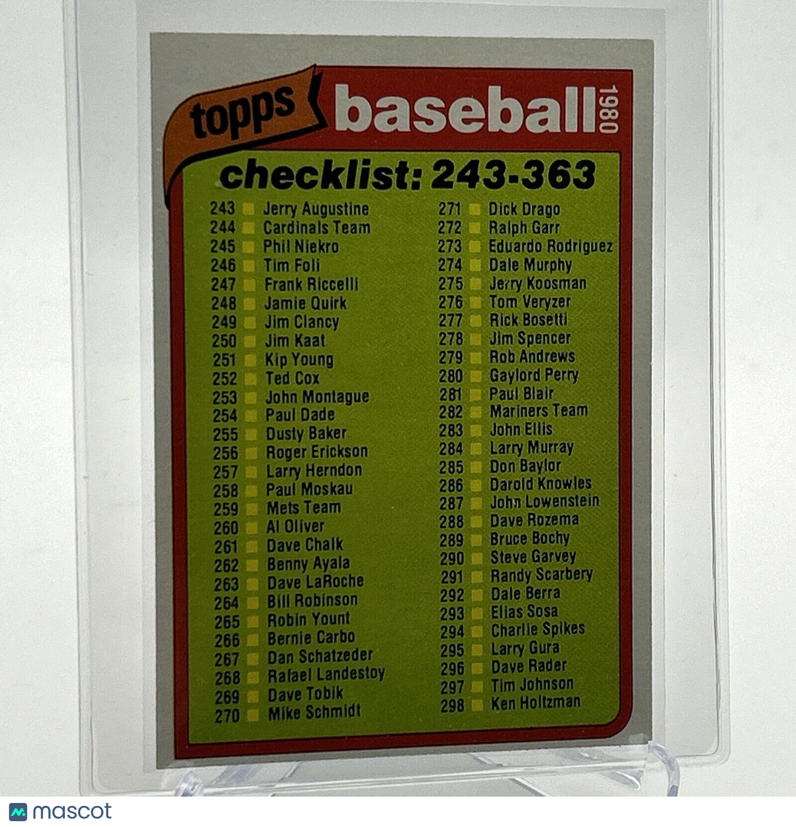 1980 Topps Checklist: 243-363 Baseball Card #348 NM-Mint FREE SHIPPING
