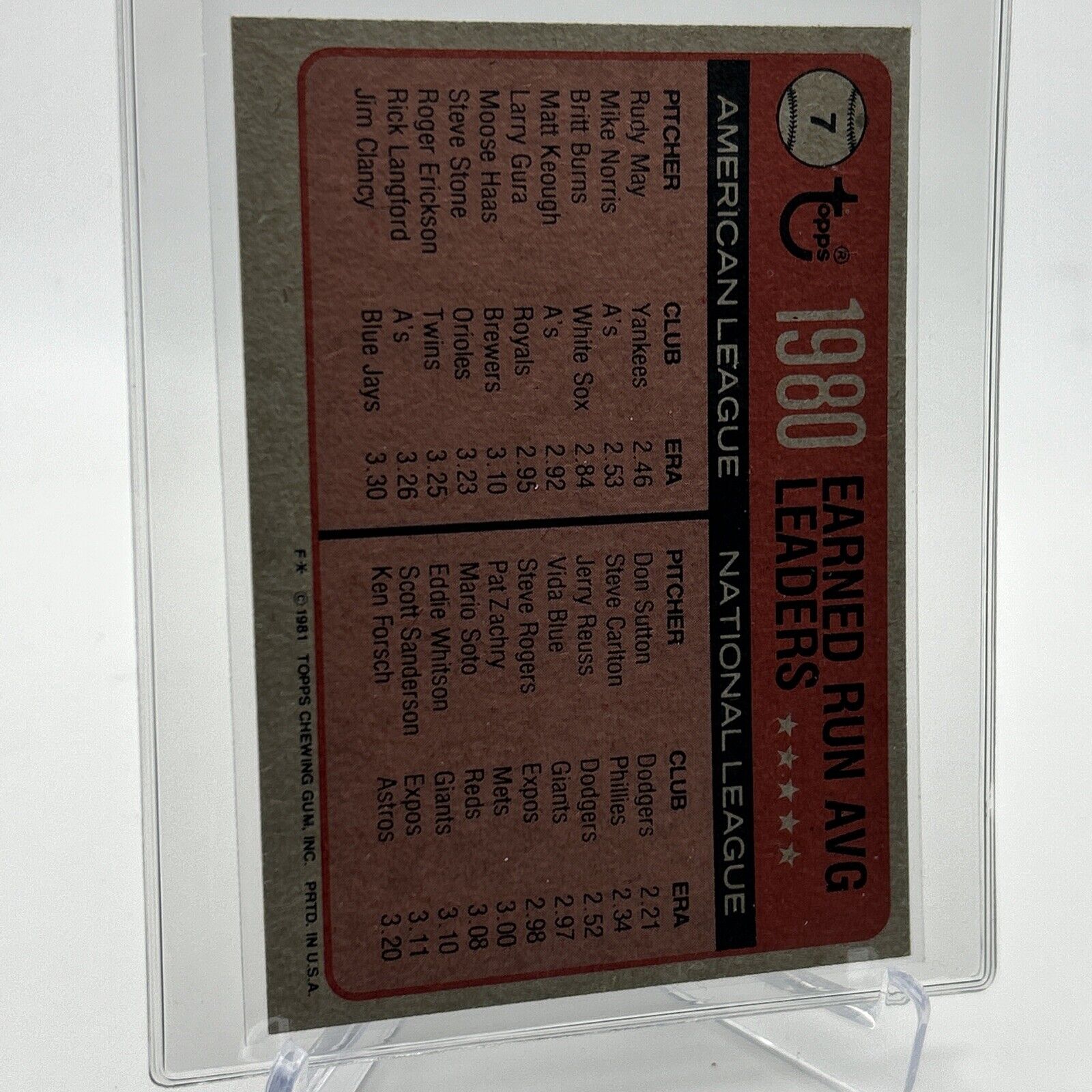 1981 Topps 1980 Earned Run Average Leaders Card #7 NM-Mint FREE SHIPPING
