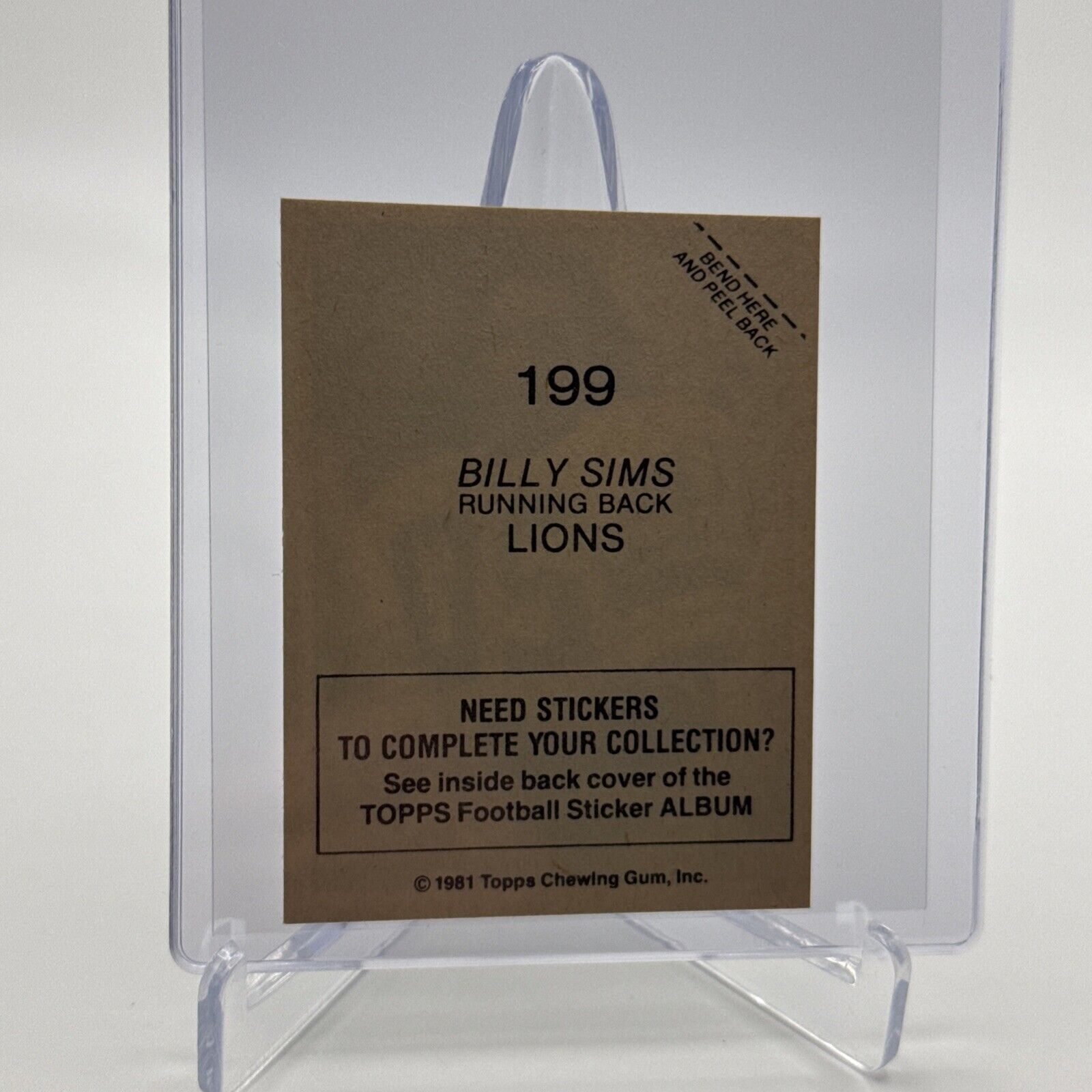 1981 Topps Billy Sims Football Sticker Card #199 NM-MT FREE SHIPPING