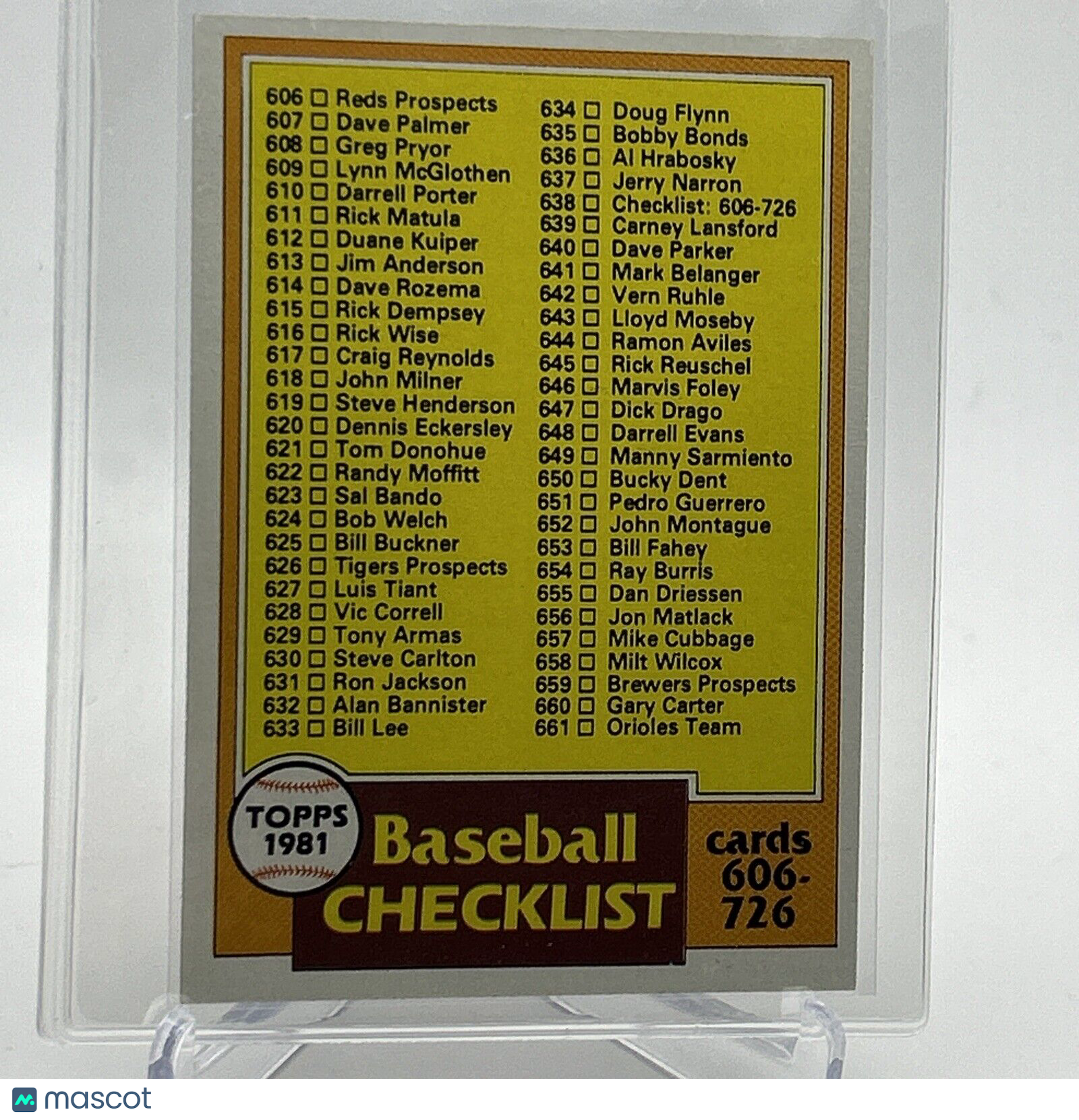 1981 Topps Checklist: 606-726 Baseball Card #638 NM-Mint FREE SHIPPING