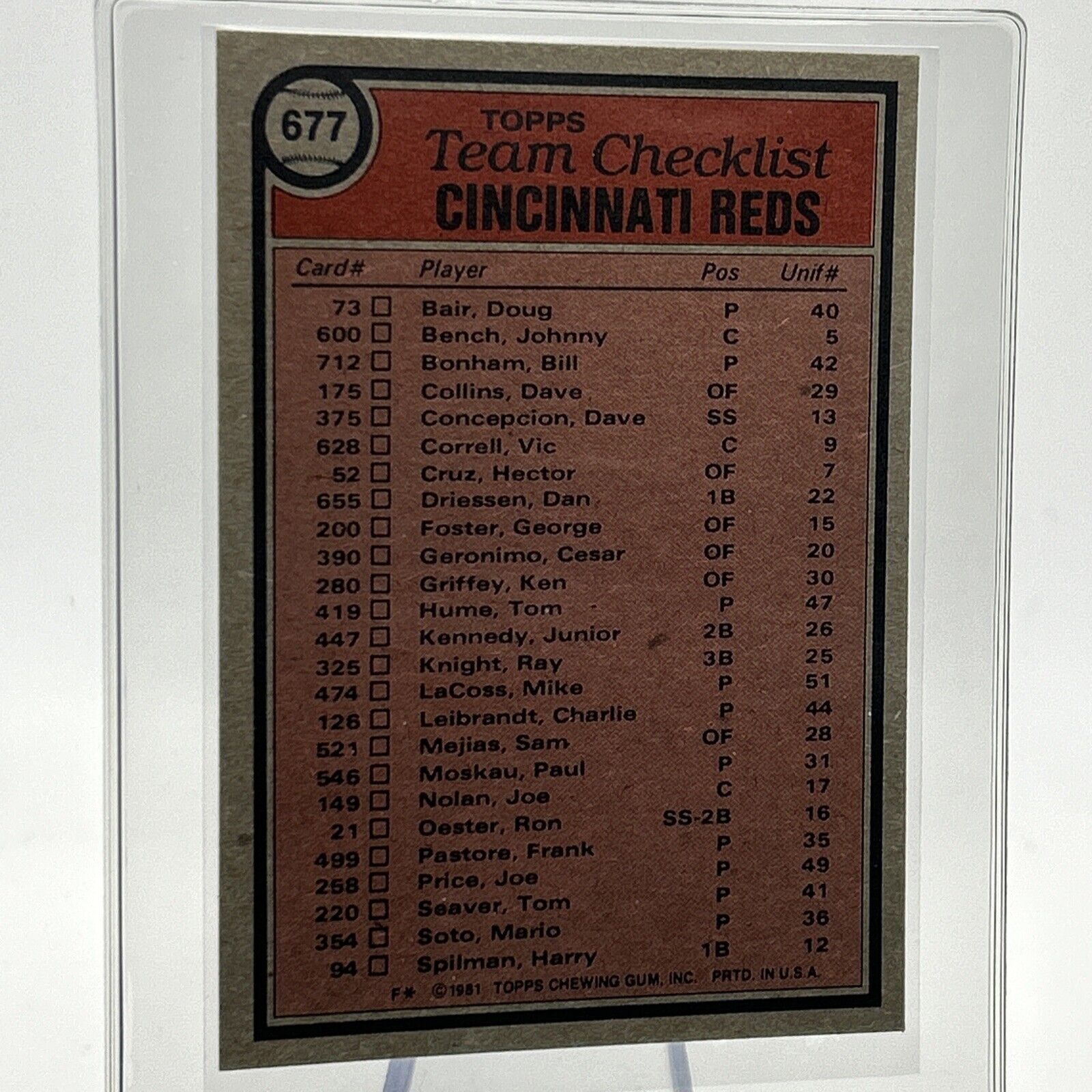 1981 Topps Cincinnati Reds Checklist Baseball Card #677 NM-Mint FREE SHIPPING