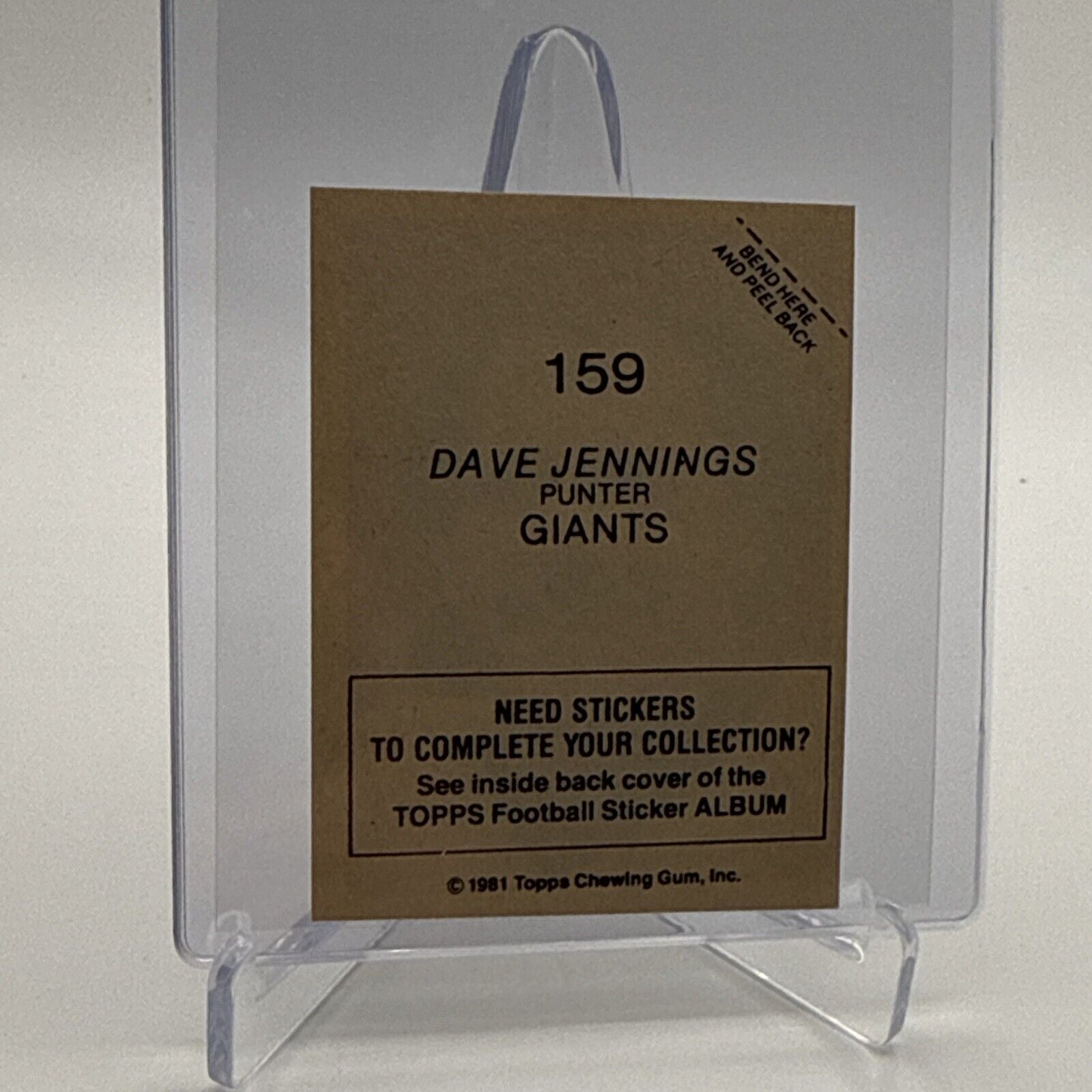 1981 Topps Dave Jennings Football Sticker Card #159 NM-MT FREE SHIPPING