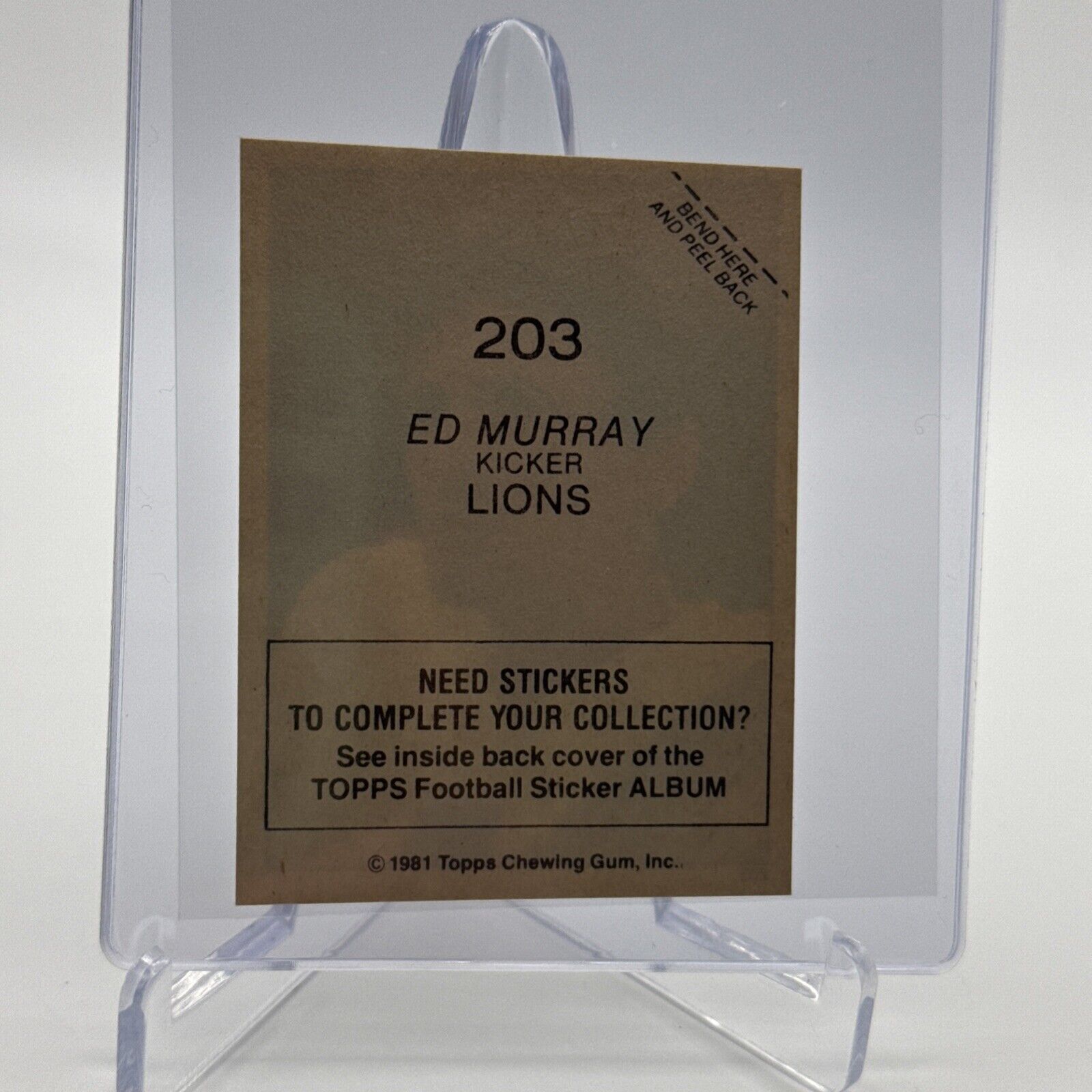 1981 Topps Ed Murray Football Sticker Card #203 NM-MT FREE SHIPPING