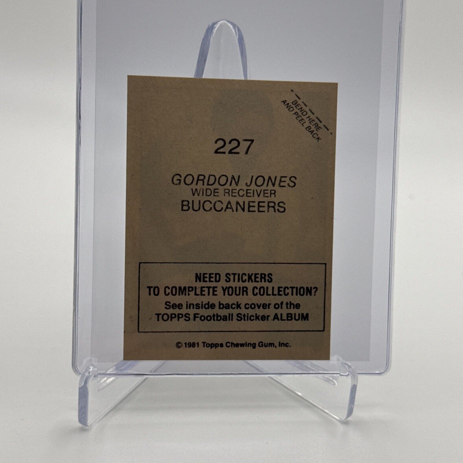 1981 Topps Gordon Jones Football Sticker Card #227 NM-MT FREE SHIPPING