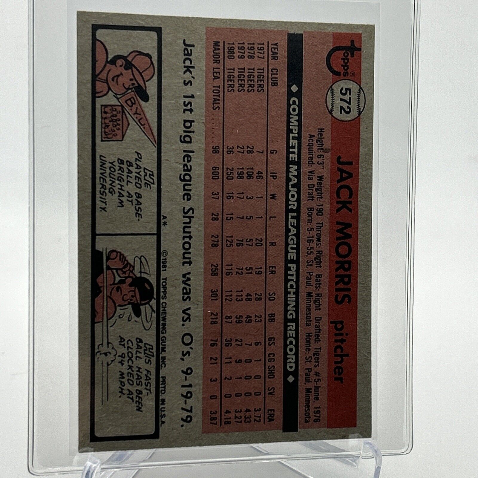 1981 Topps Jack Morris Baseball Card #572 NM-Mint FREE SHIPPING