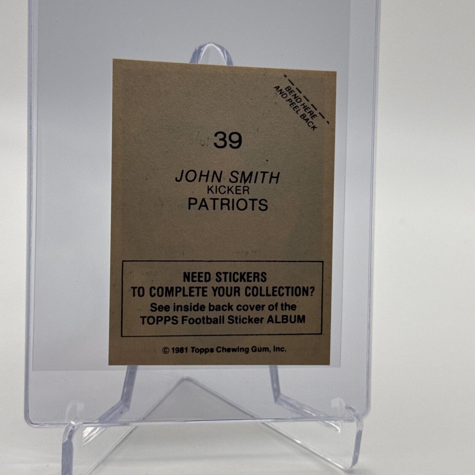 1981 Topps John Smith Football Sticker Card #39 NM-MT FREE SHIPPING