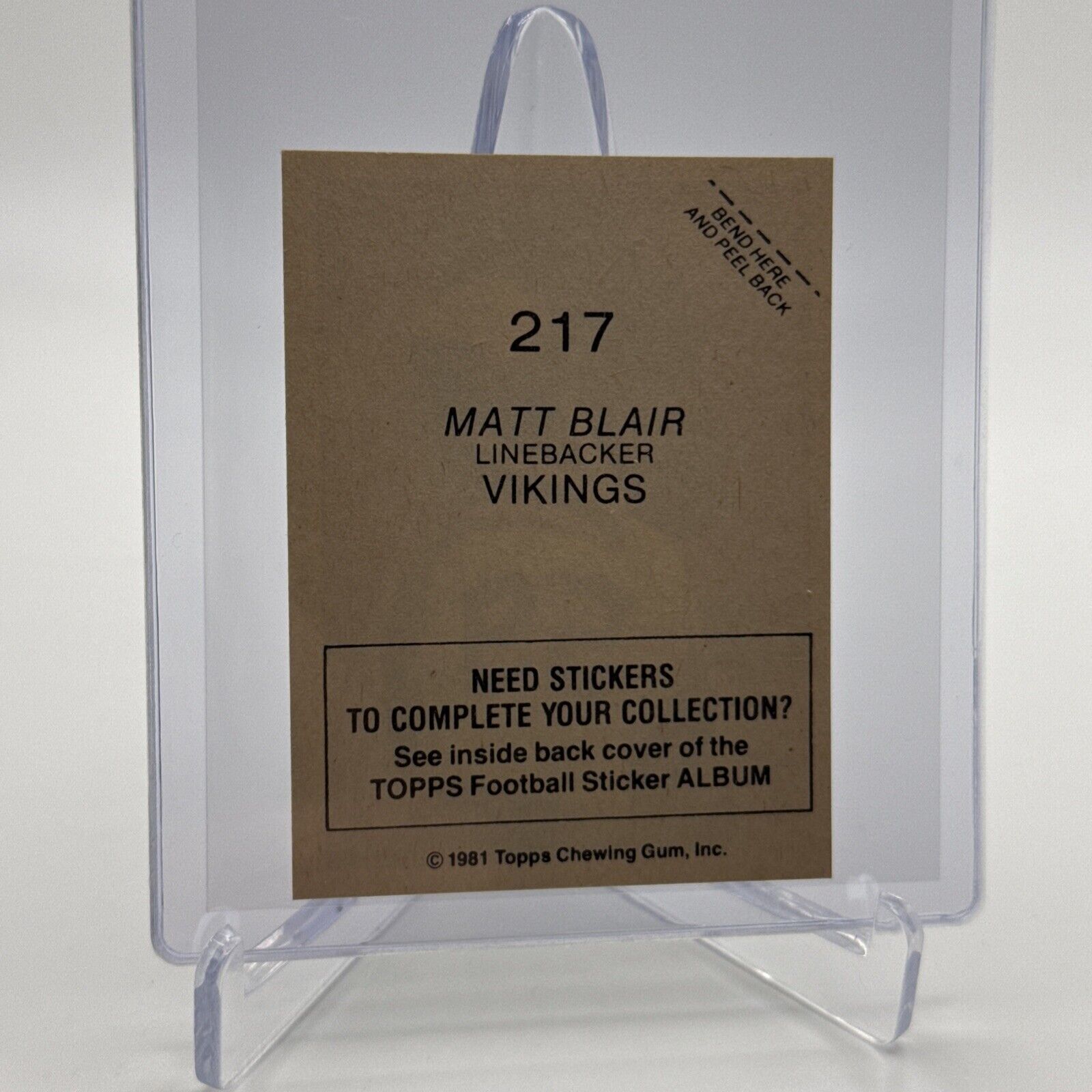 1981 Topps Matt Blair Football Sticker Card #217 NM-MT FREE SHIPPING