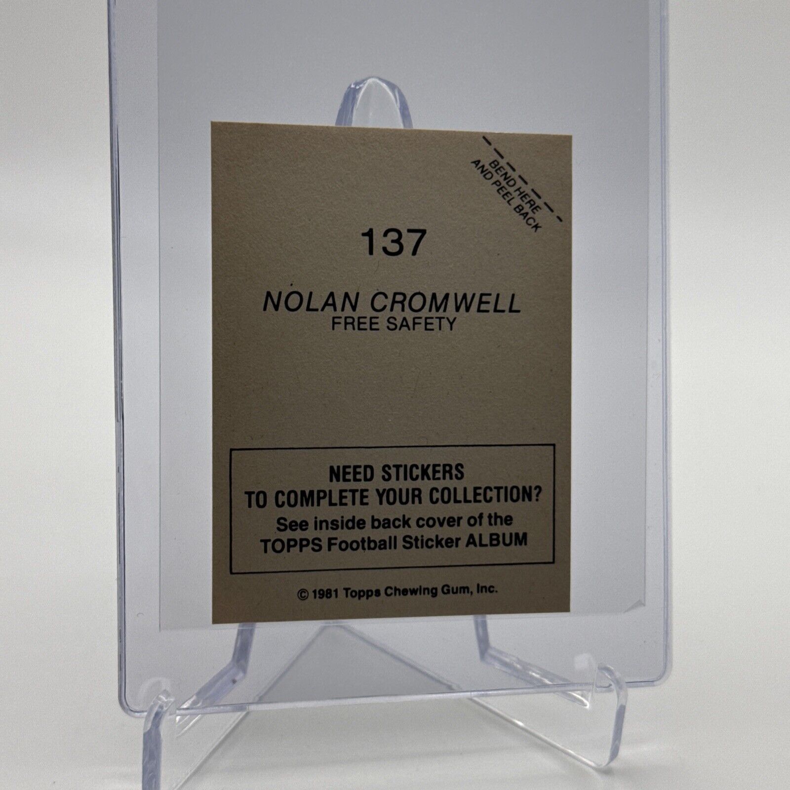 1981 Topps Nolan Cromwell FOIL Football Sticker Card #137 NM-MT FREE SHIPPING