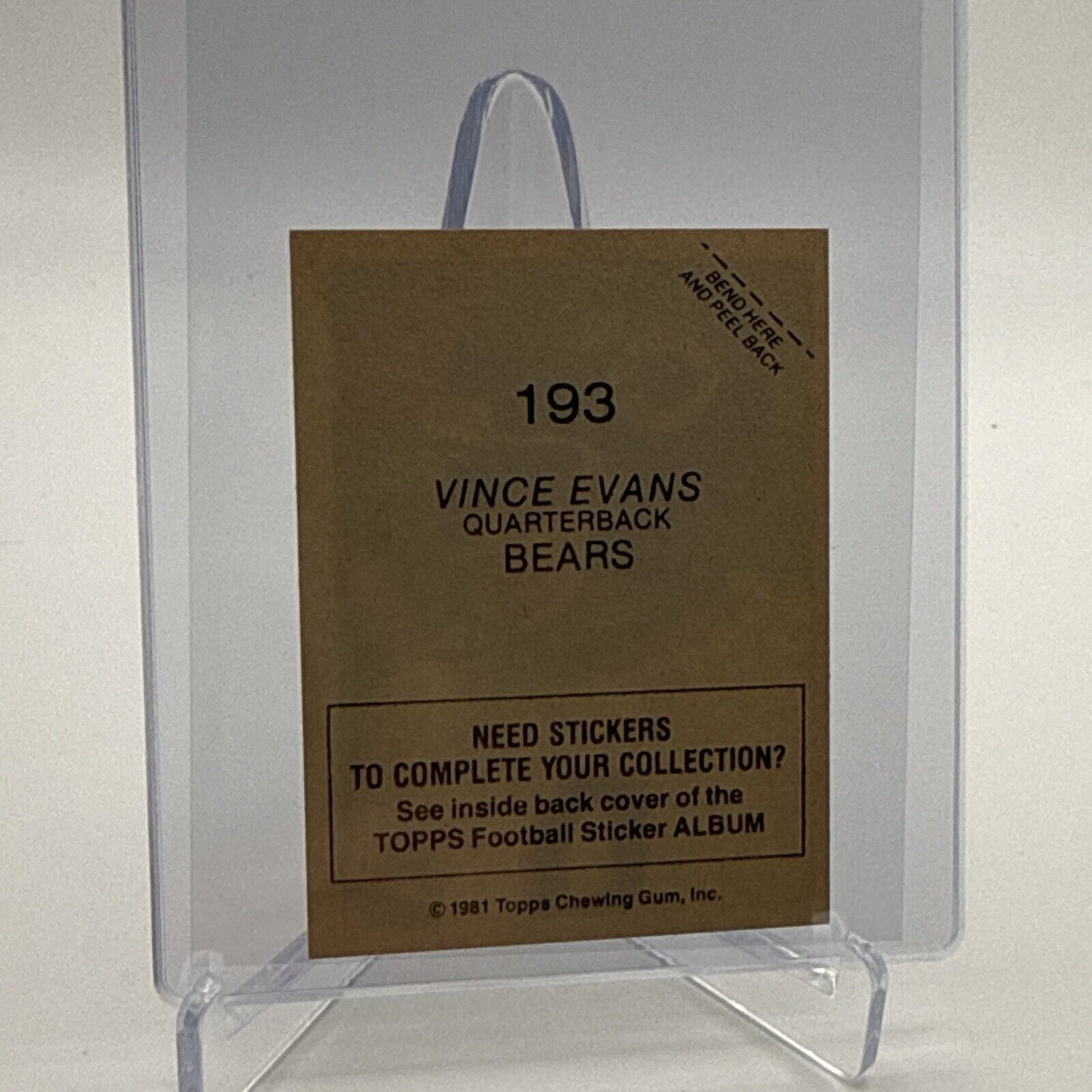 1981 Topps Vince Evans Football Sticker Card #193 NM-MT FREE SHIPPING