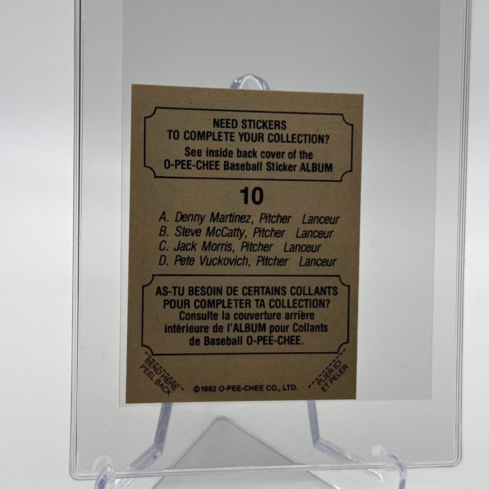 1982 O-Pee-Chee Sticker Martinez/McCatty/Morris/Vuckovich#10 NM-MT FREE SHIPPING
