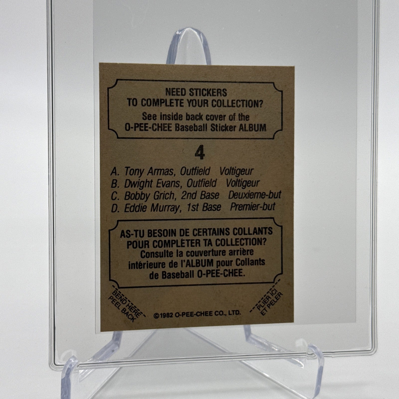 1982 O-Pee-Chee Stickers Armas/Evans/Grich/Murray Card #4 NM-MT FREE SHIPPING