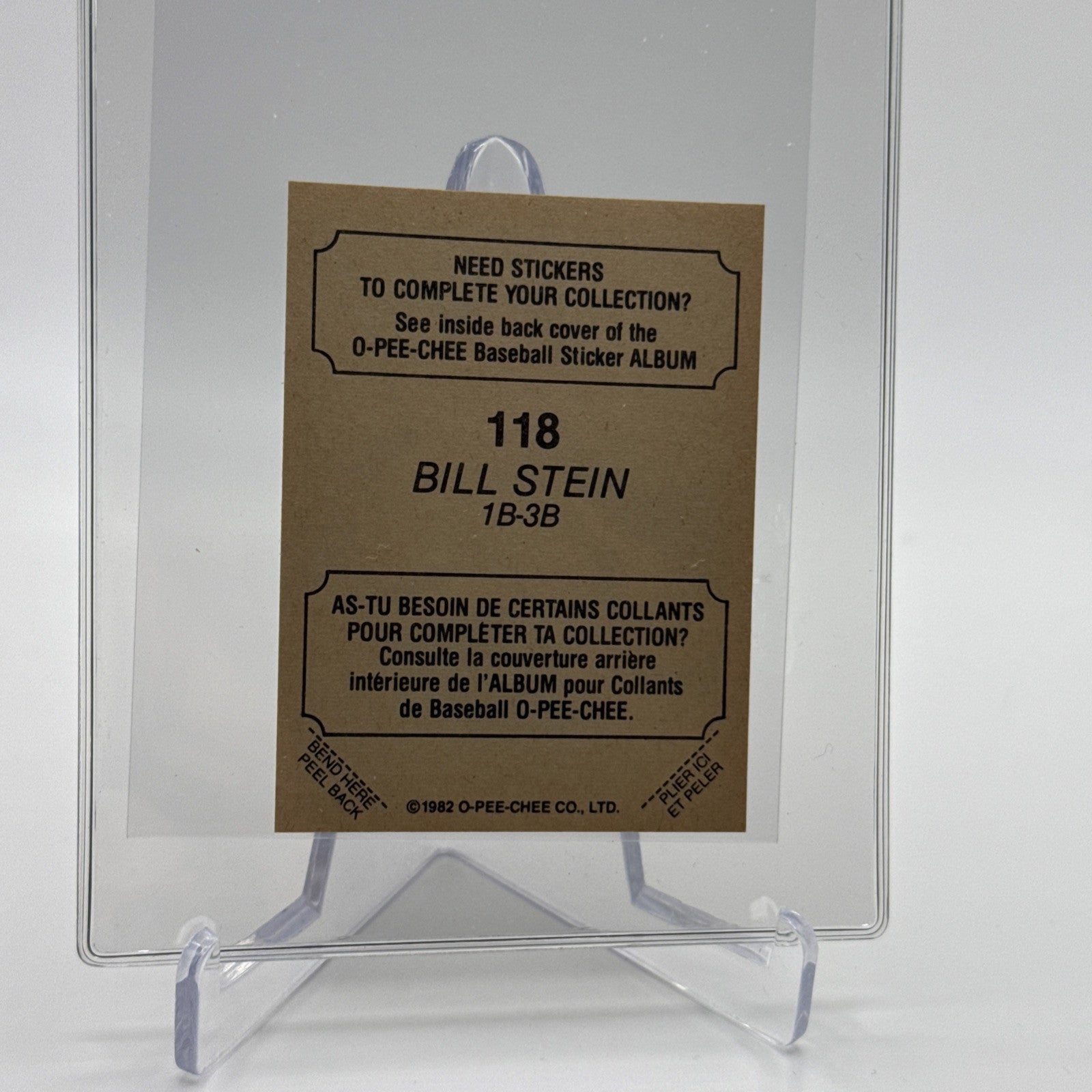 1982 O-Pee-Chee Stickers Bill Stein Baseball Card #118 NM-MT FREE SHIPPING