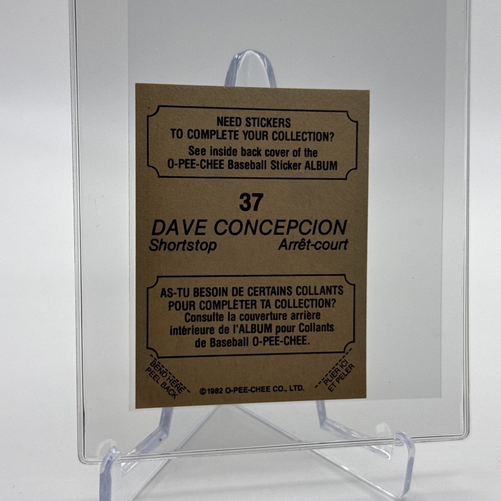 1982 O-Pee-Chee Stickers Dave Concepcion Baseball Card #37 NM-MT FREE SHIPPING