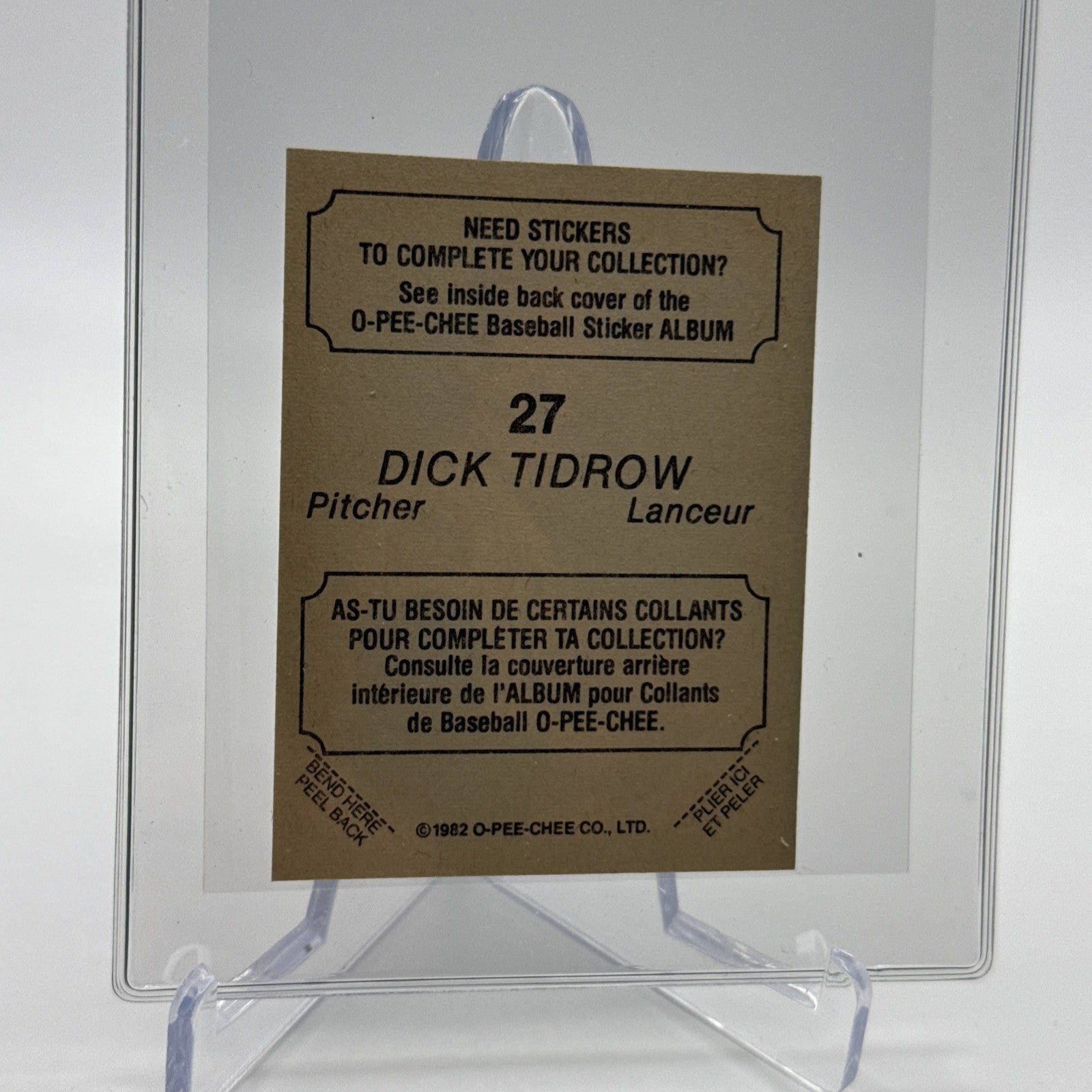 1982 O-Pee-Chee Stickers Dick Tidrow Baseball Card #27 NM-MT FREE SHIPPING
