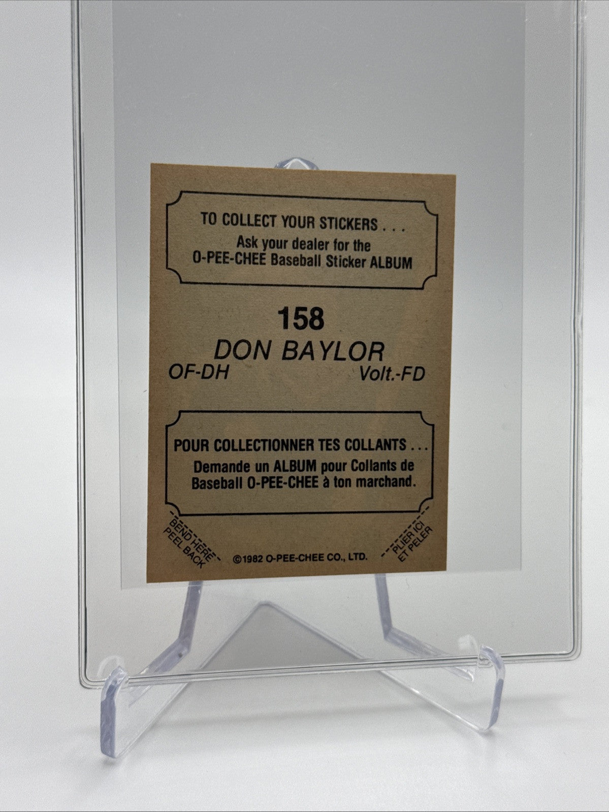 1982 O-Pee-Chee Stickers Don Baylor Baseball Card #158 NM-MT FREE SHIPPING